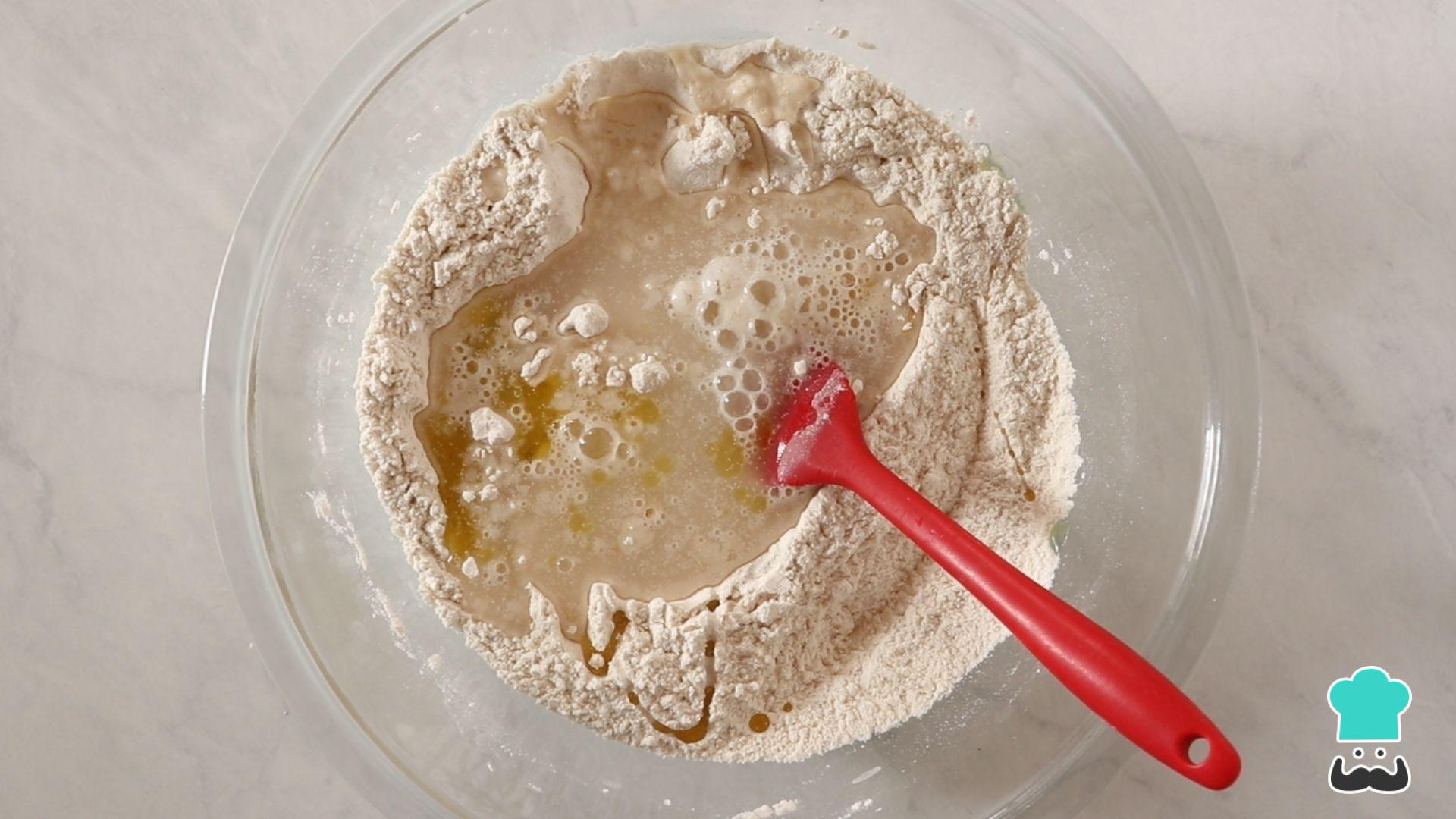 Comece misturando com uma espátula e depois sove por 10 minutinhos até a massa ficar lisa e grudando um pouco nas mãos.