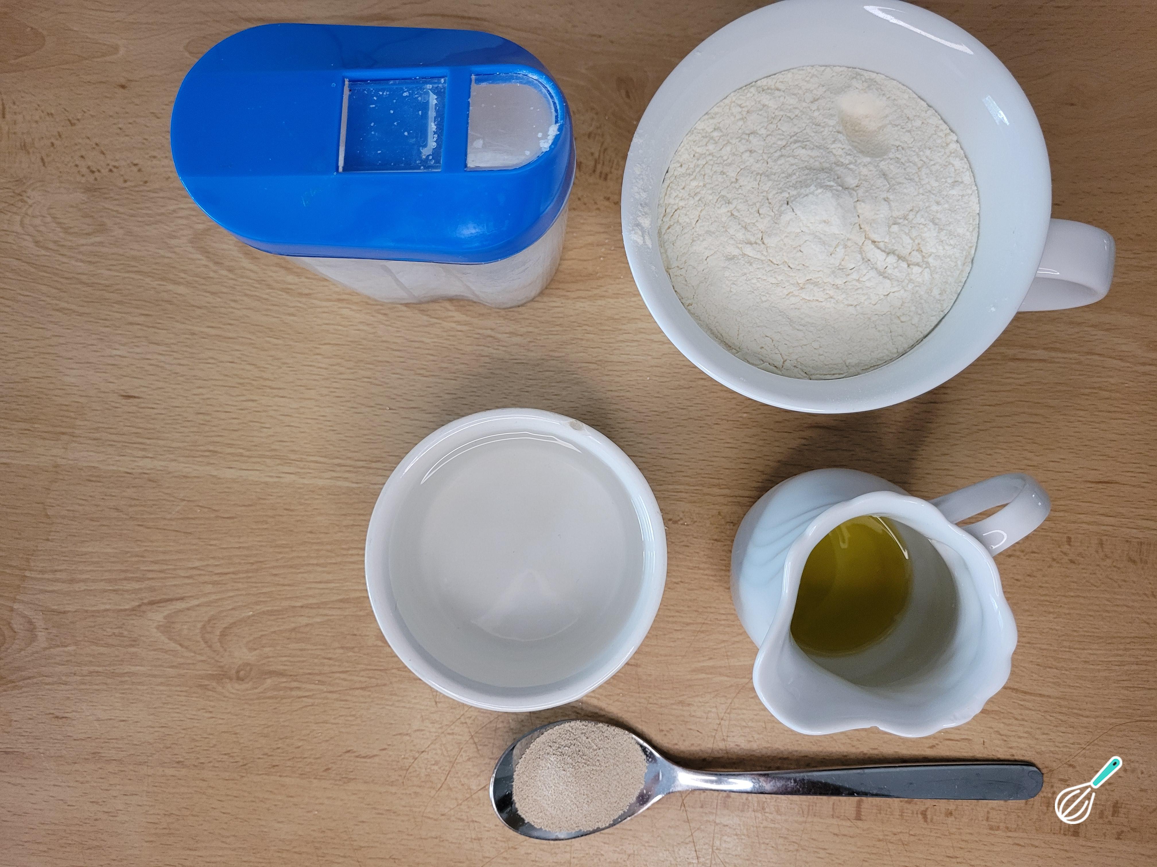 Comece separando os ingredientes para fazer a massa da pizza rápida.