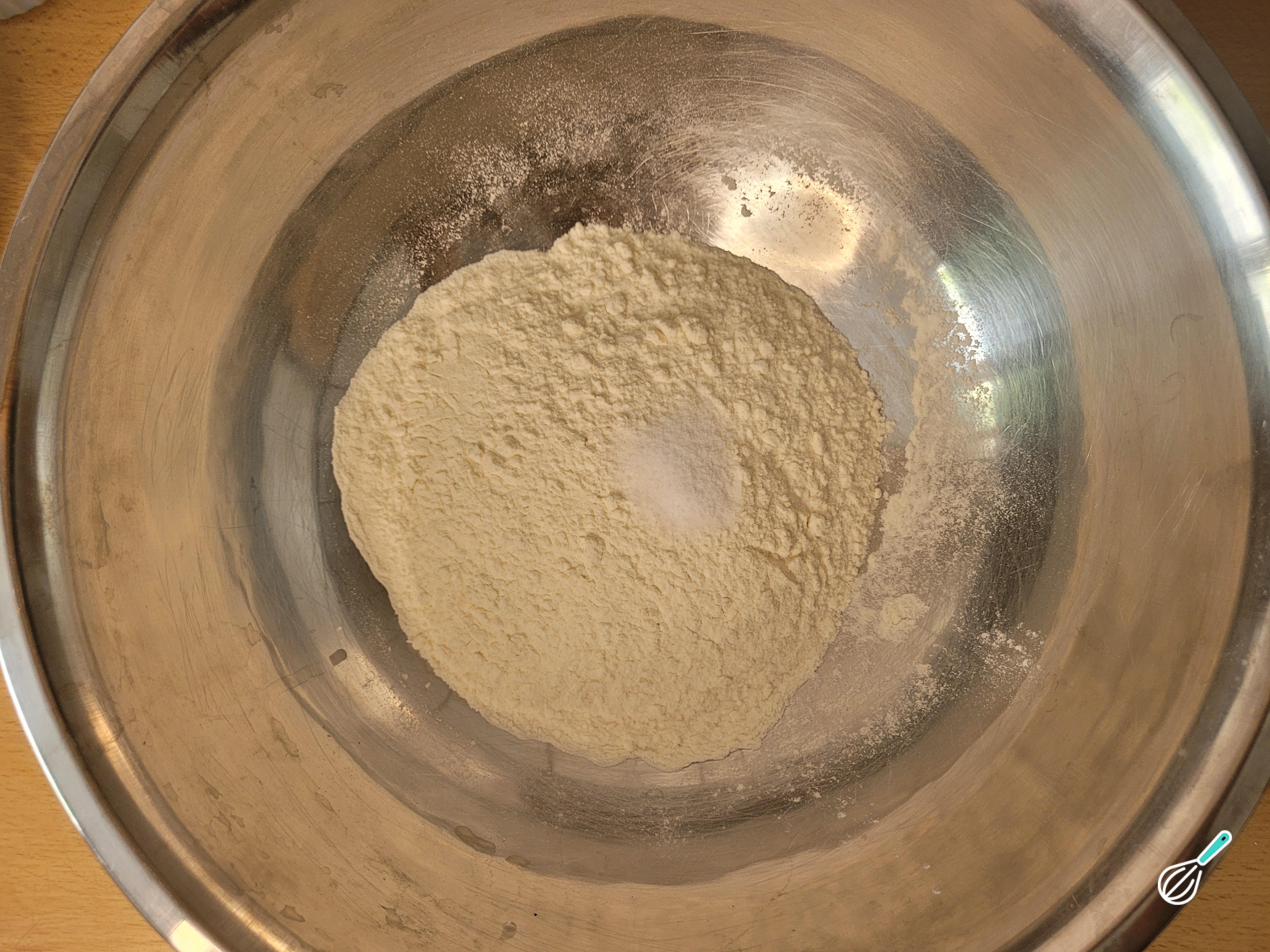 Em uma tigela grande, misture a farinha com o sal.