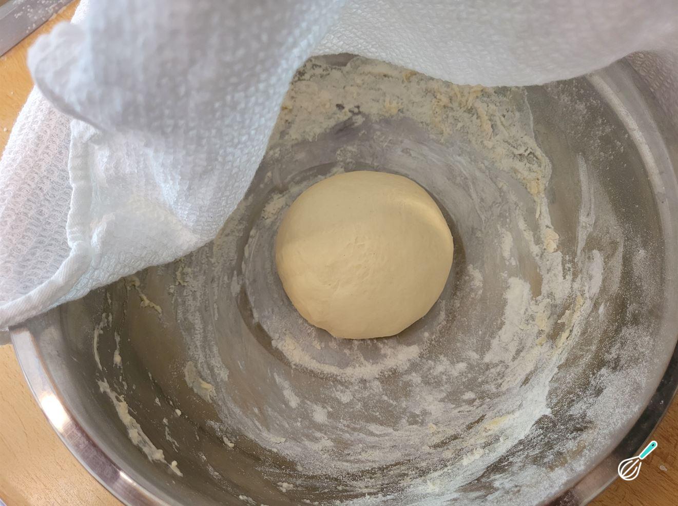 Forme uma bola com a massa e volte para a tigela grande. Cubra com pano de prato e deixe fermentar por 40 minutos a 1,5h, dependendo da temperatura ambiente, até dobrar de tamanho.