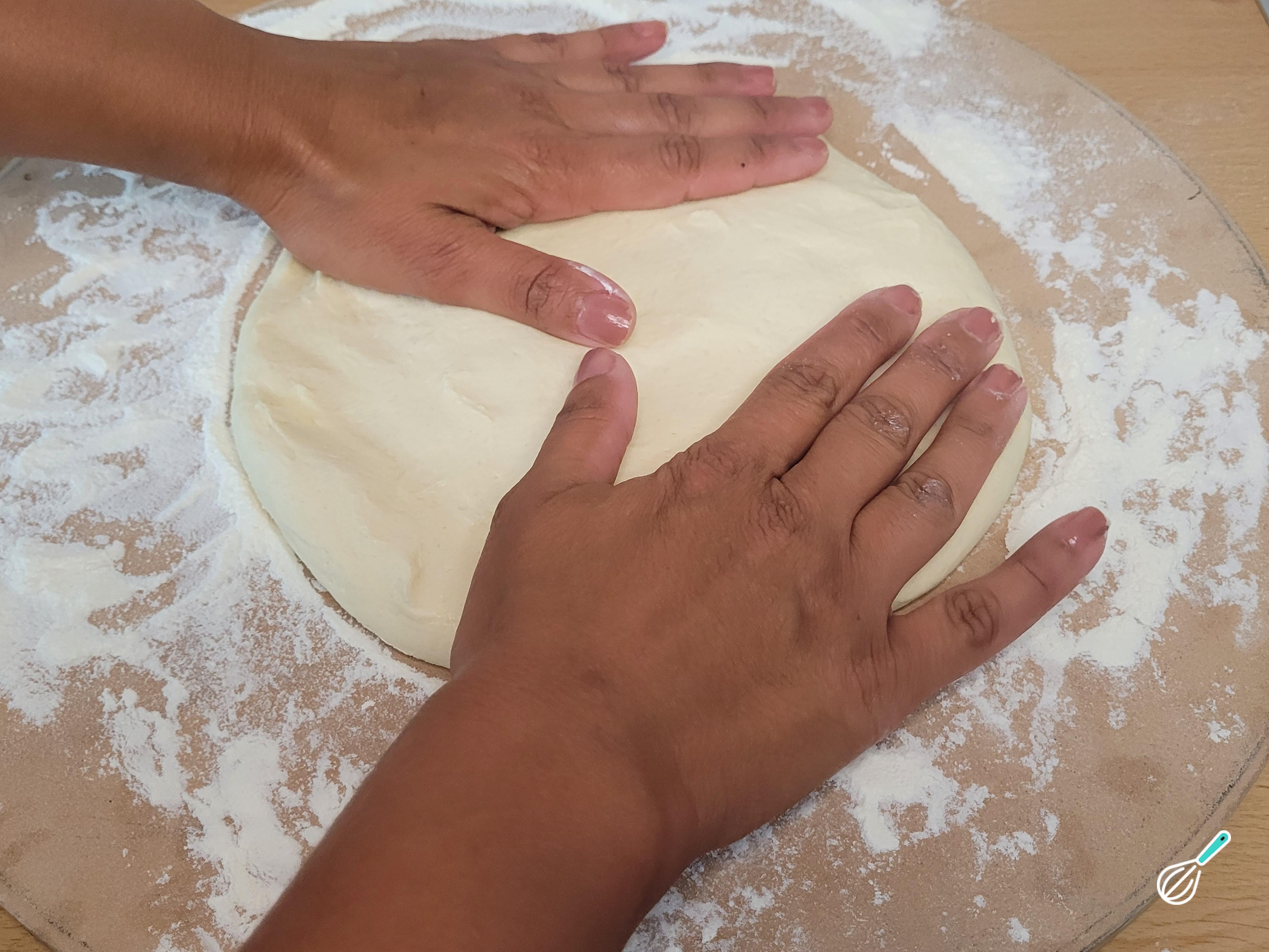 Dica: Pode deixar da espessura que preferir, lembrando que ela ainda vai dar uma leve crescida no forno.