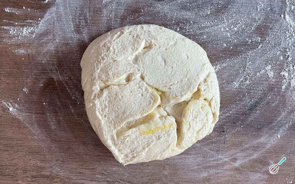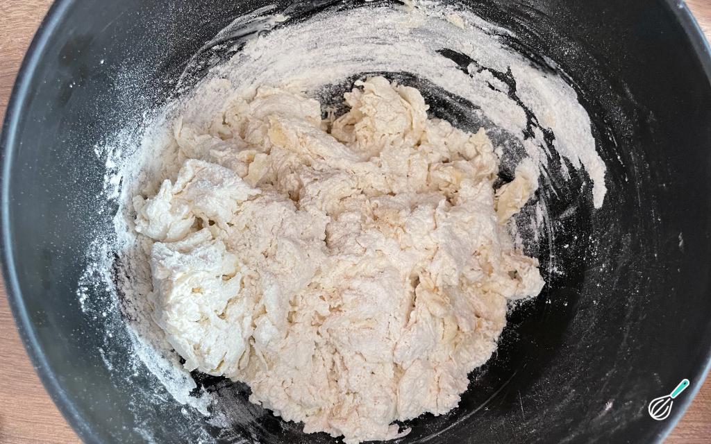 Com o gancho da batedeira, sove a massa por aproximadamente 10 minutos na velocidade média ou até a massa prender toda ao redor do gancho.