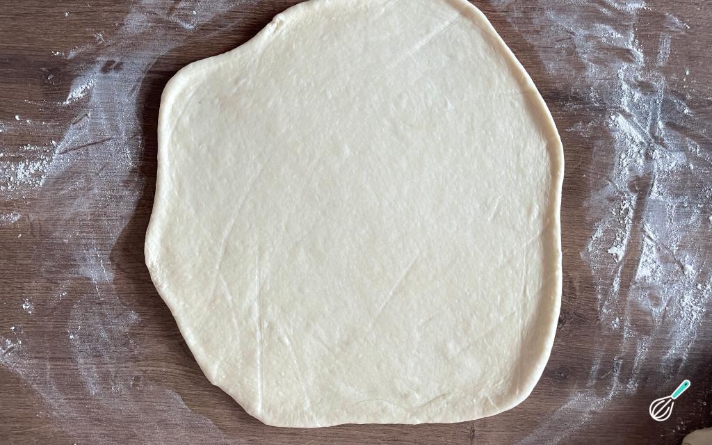Abra a massa com a ajuda de um rolo de macarrão até ter aproximadamente 30 centímetros de diâmetro.