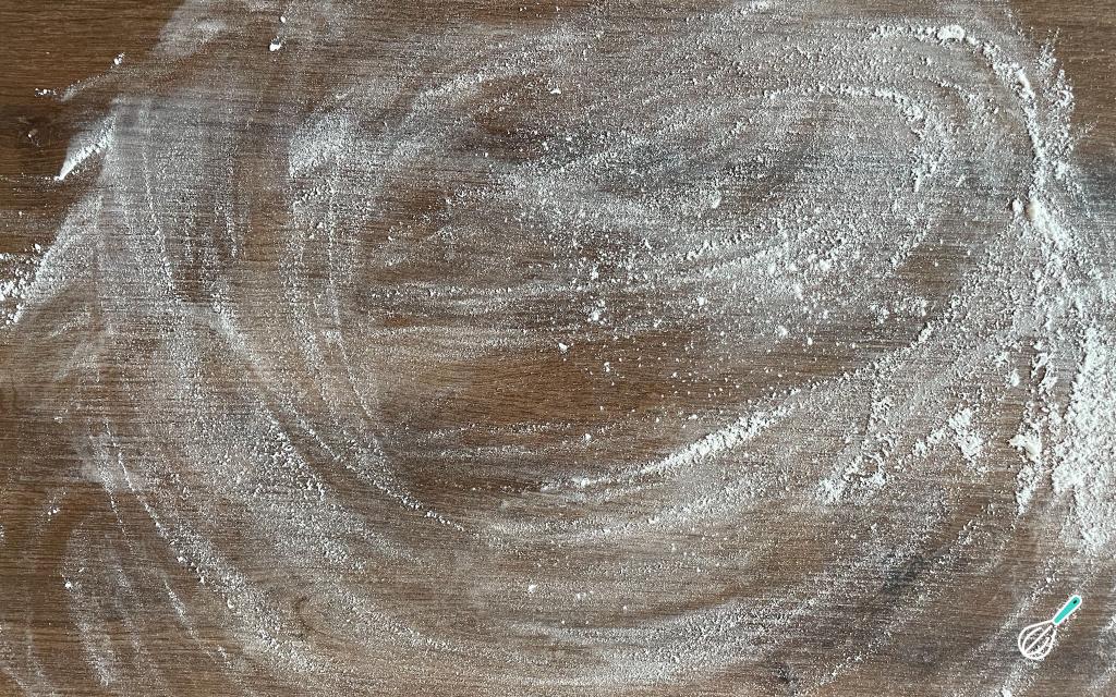 Coloque a massa nesta superfície enfarinhada e divida em duas partes – uma cubra com um pano para não ressecar.