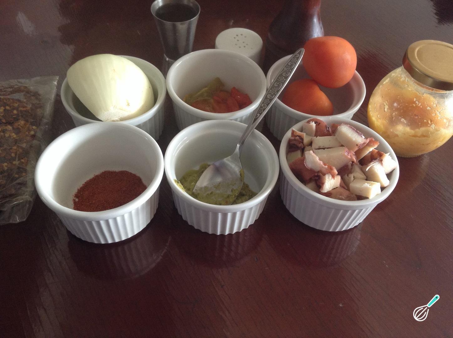 O primeiro passo para fazer esta receita de polvo ao molho é preparar os ingredientes.