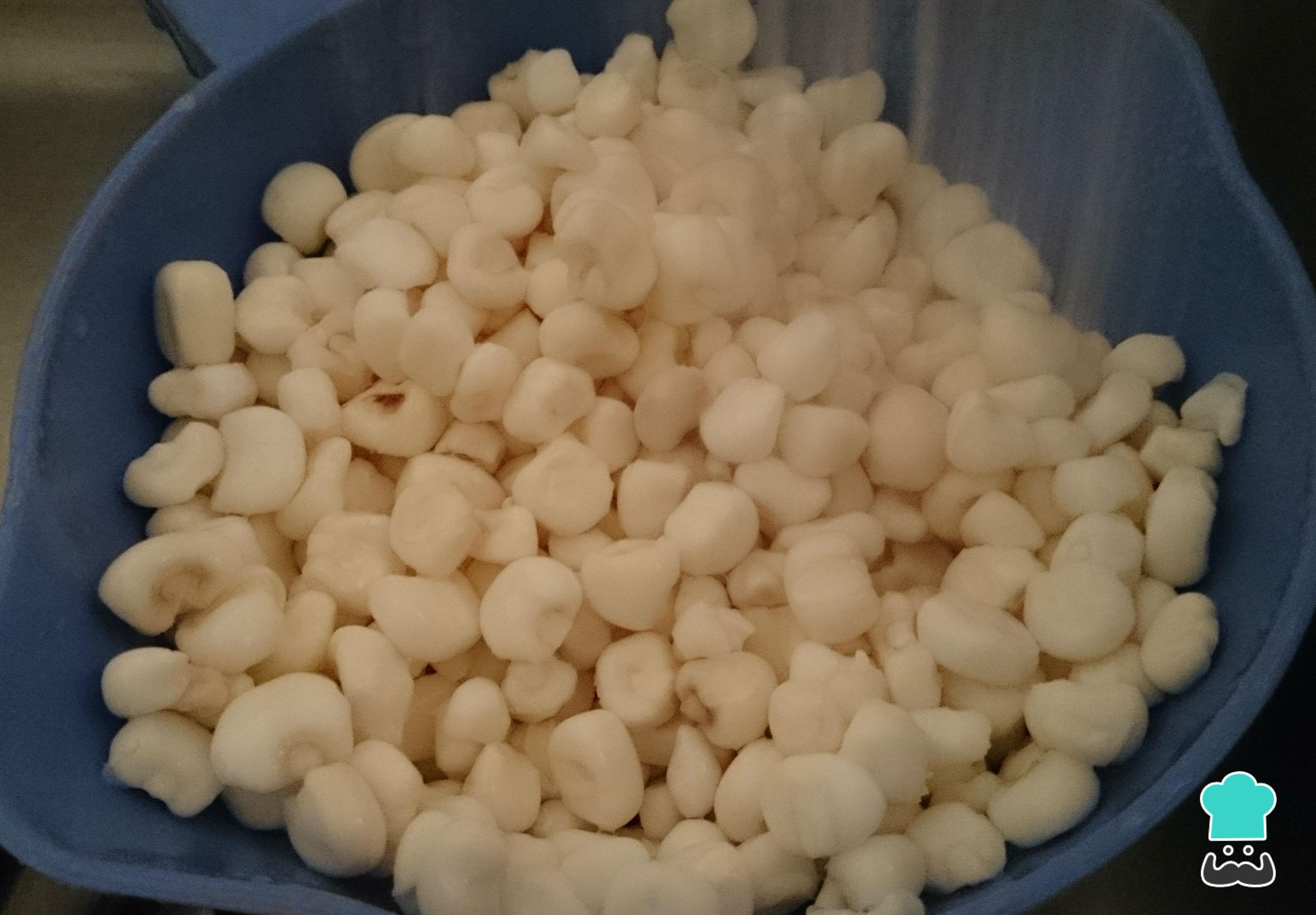 Para preparar esta receita de pozole mexicano verde, comece por lavar muito bem o milho. Escorra e reserve.