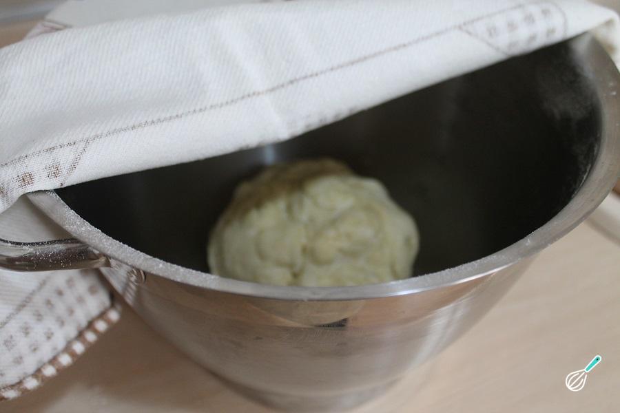 Modele a massa do pretzel salgado em forma de bola e coloque em uma tigela. Cubra com um pano prato umedecido e deixe repousar por 15 minutos em um local morno.