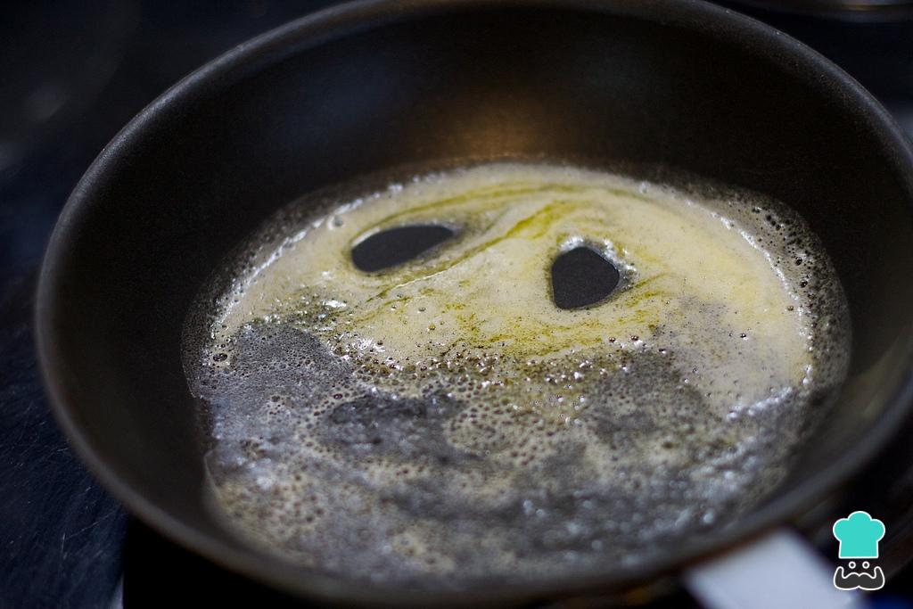 Coloque a manteiga numa frigideira grande e, quando derreter, frite os prime ribs de um lado e do outro por 5-7 minutos. Retire quando estiver douradinha por fora mas suculenta no interior.