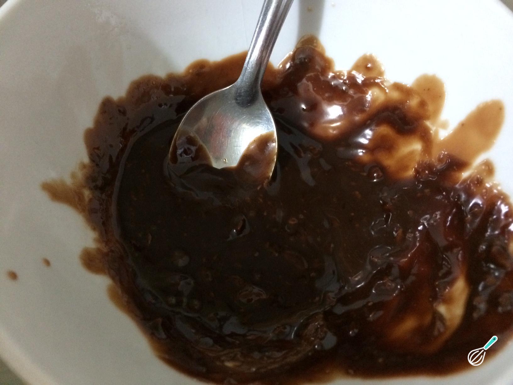 Para a cobertura de chocolate, numa tigela adicione o chocolate e o creme de leite, leve ao microondas por 30 segundos, retire e misture até derreter o chocolate. Se o chocolate não derreter por completo, repita por mais 30 segundos.