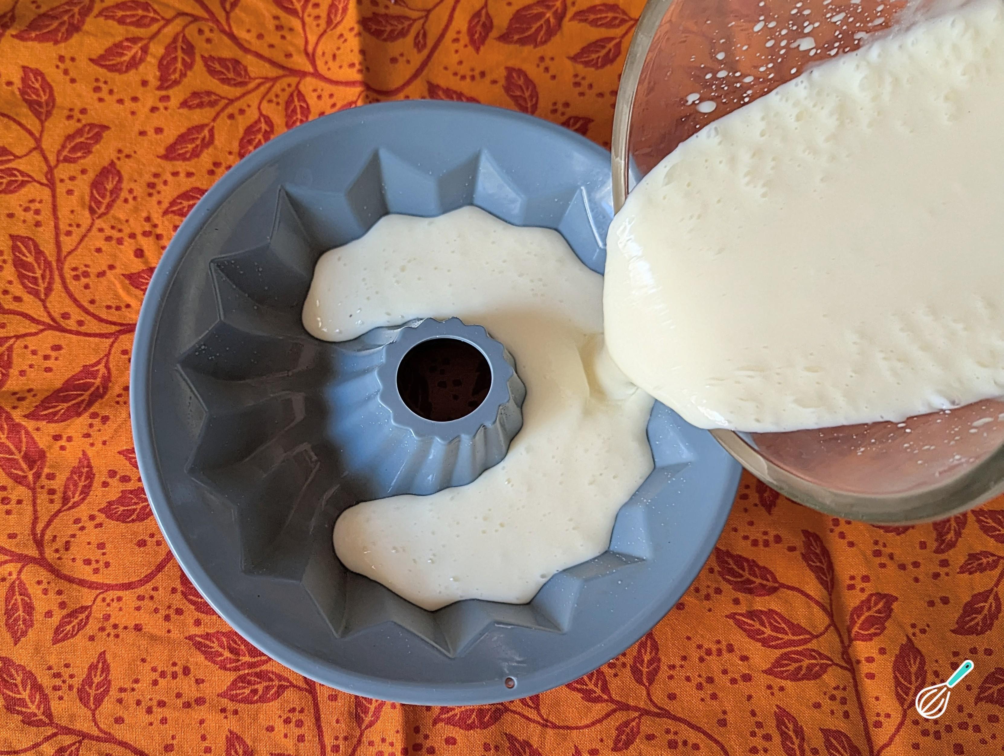 Em uma forma de pudim pequena, despeje a mistura do liquidificador e nivele com uma espátula, se necessário.
