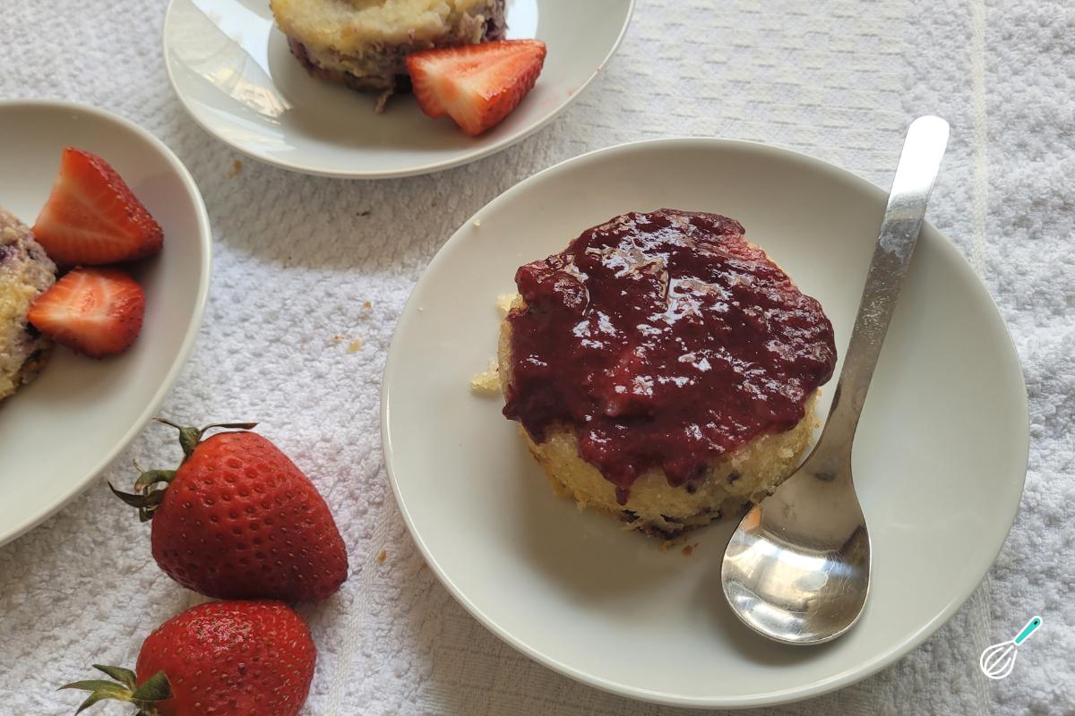Aromatizei a massa usando raspas de limão e laranja, mas você pode usar baunilha, canela ou cumaru também. A quantidade de açúcar pode ser ajustada conforme o seu paladar - aqui usei menos açúcar para ter uma sobremesa mais equlibrada e porque os mirtilos já trazem um sabor docinho para a massa.