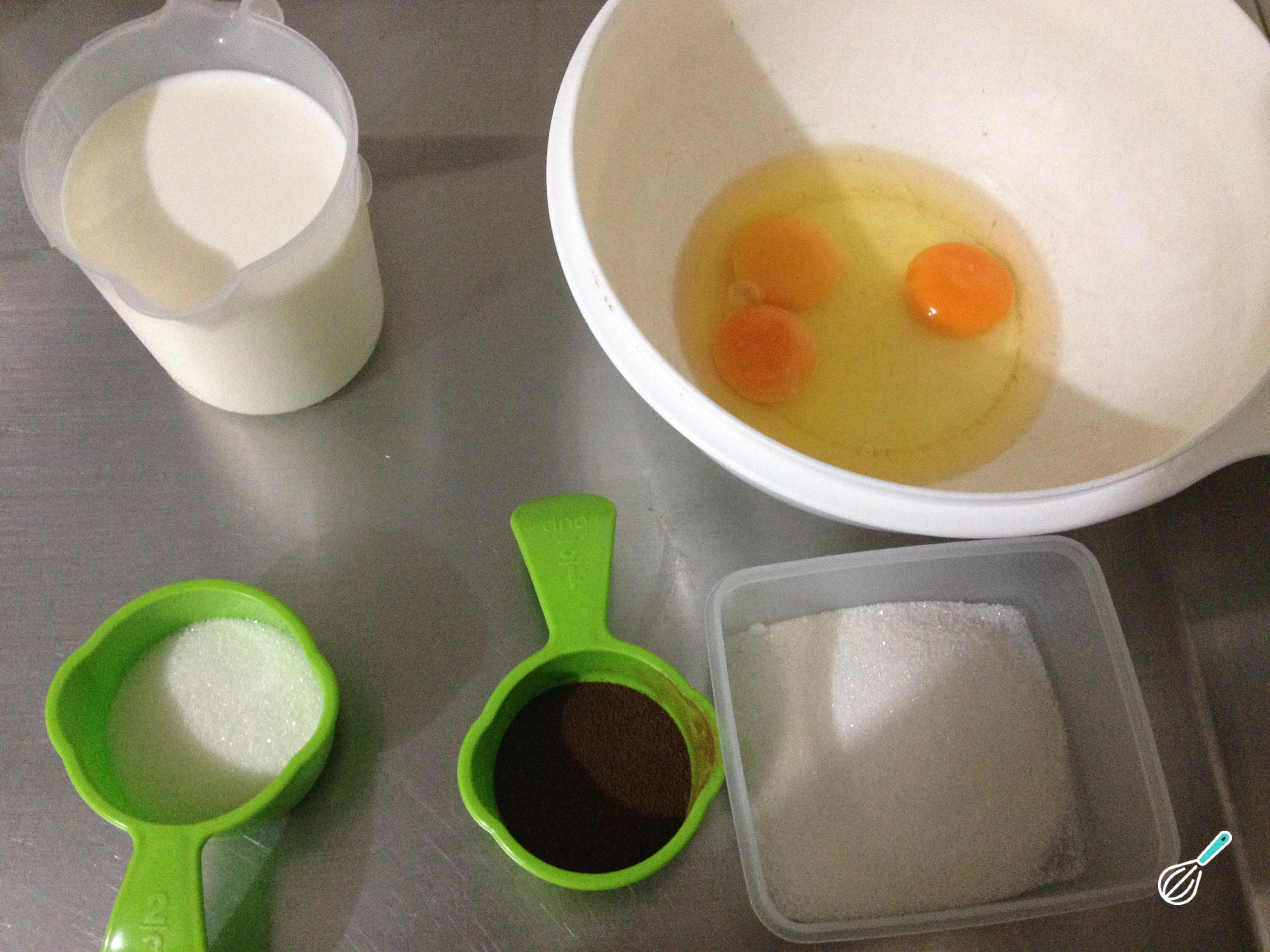 Prepare todos os ingredientes para fazer o seu pudim de café.
