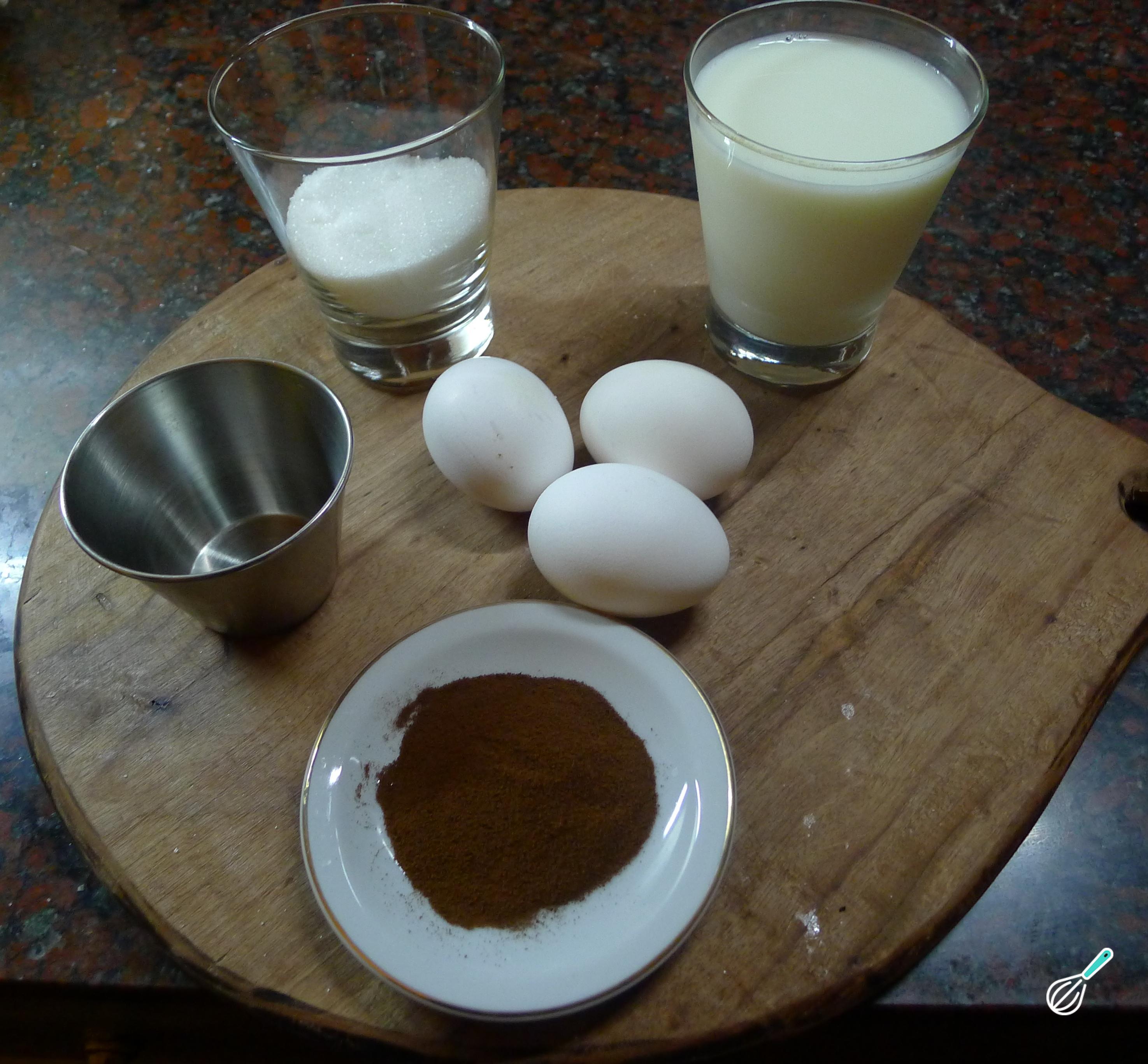 Em primeiro lugar prepare os ingredientes deste pudim de café fácil.