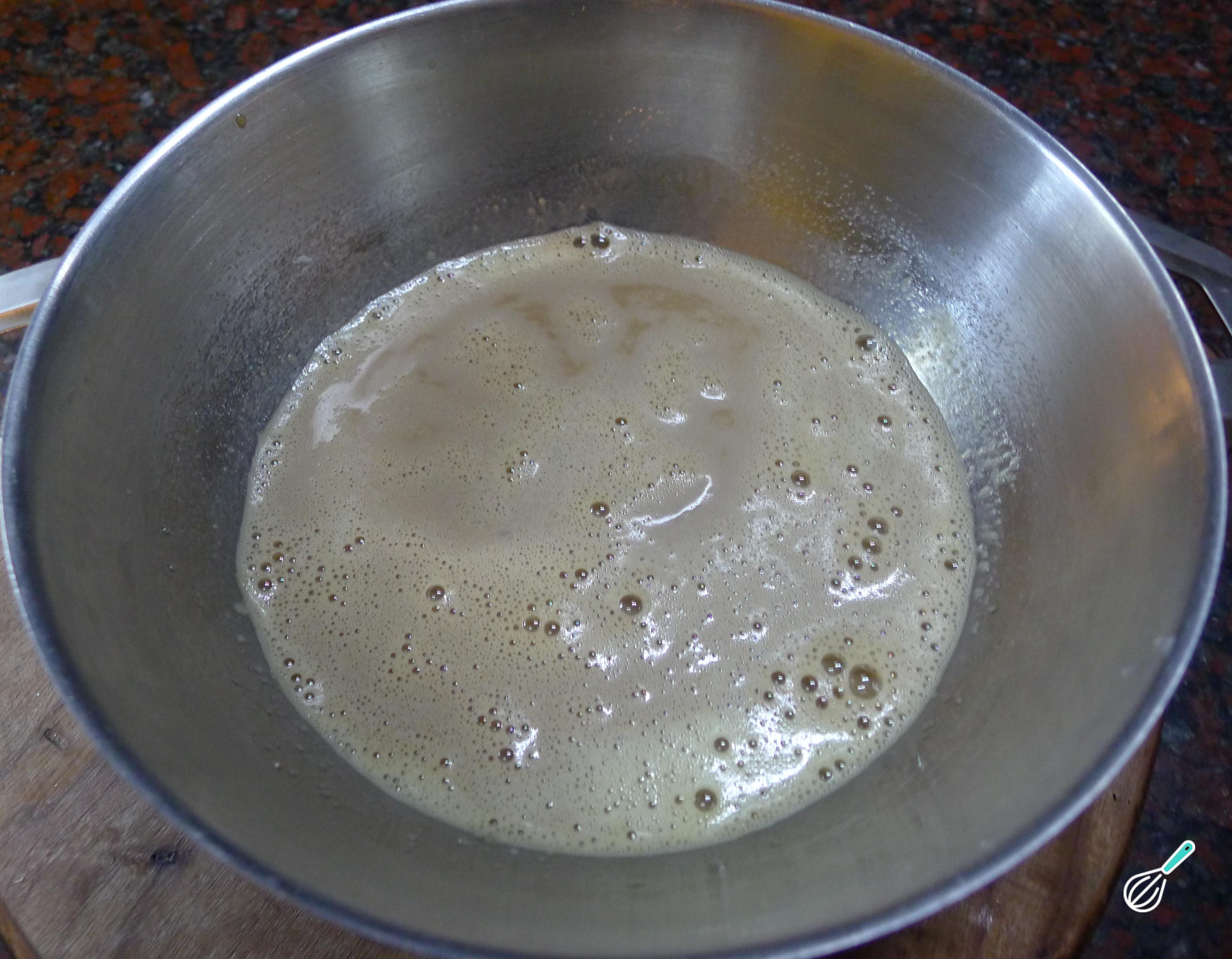 À parte, dissolva o café no leite e junte à preparação anterior. É o café que confere o gosto de pudim de café, por isso recomendamos que use café forte.