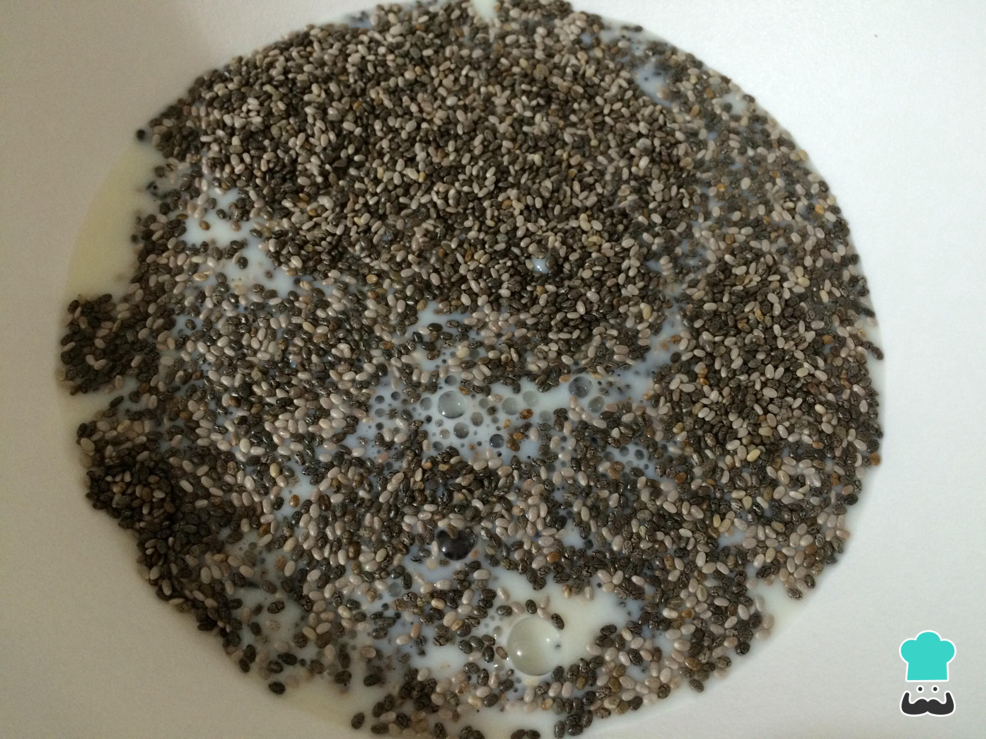 Em uma tigela misture o leite com sementes, para que hidratem e se tornem gelatinosas.