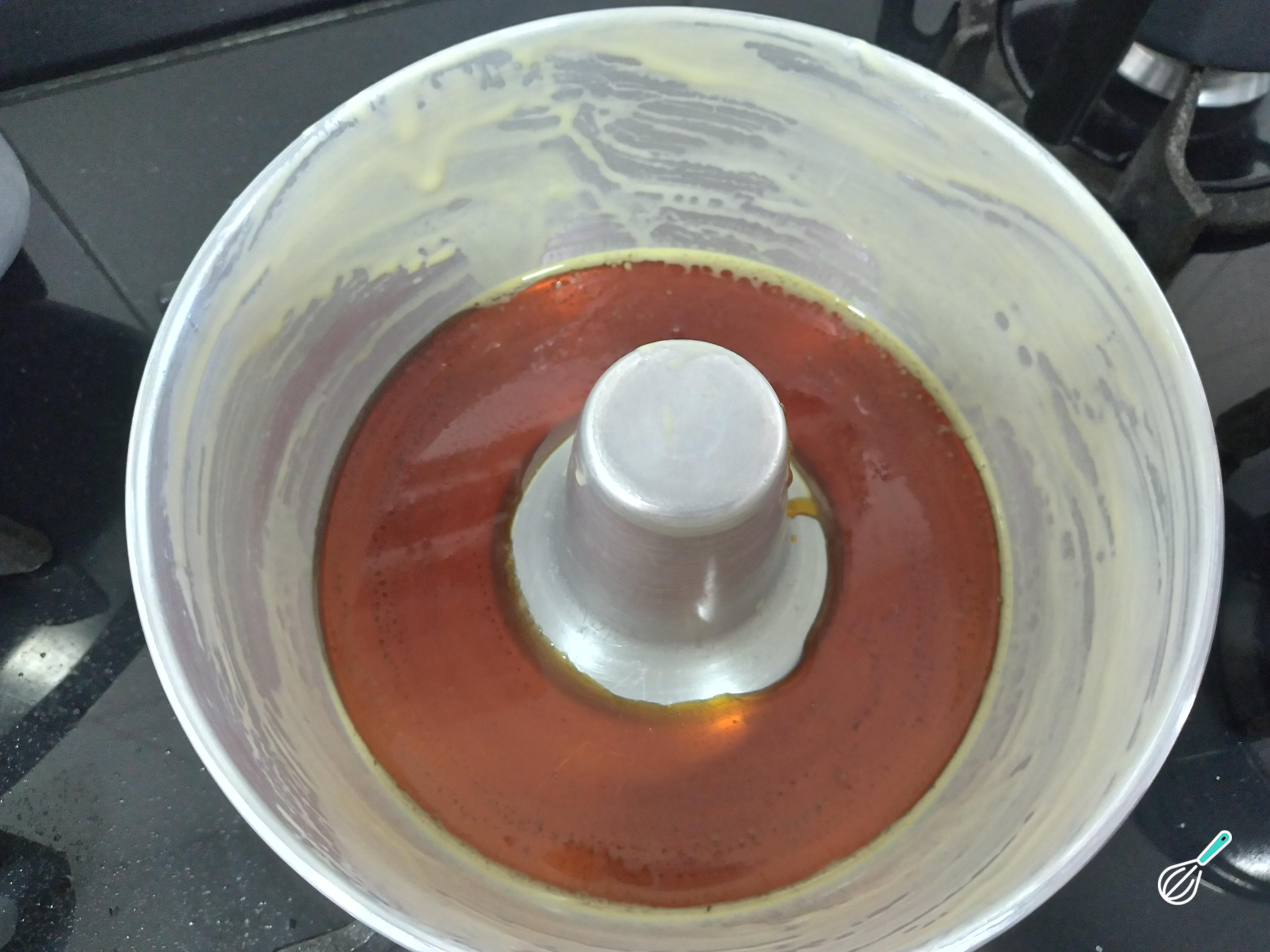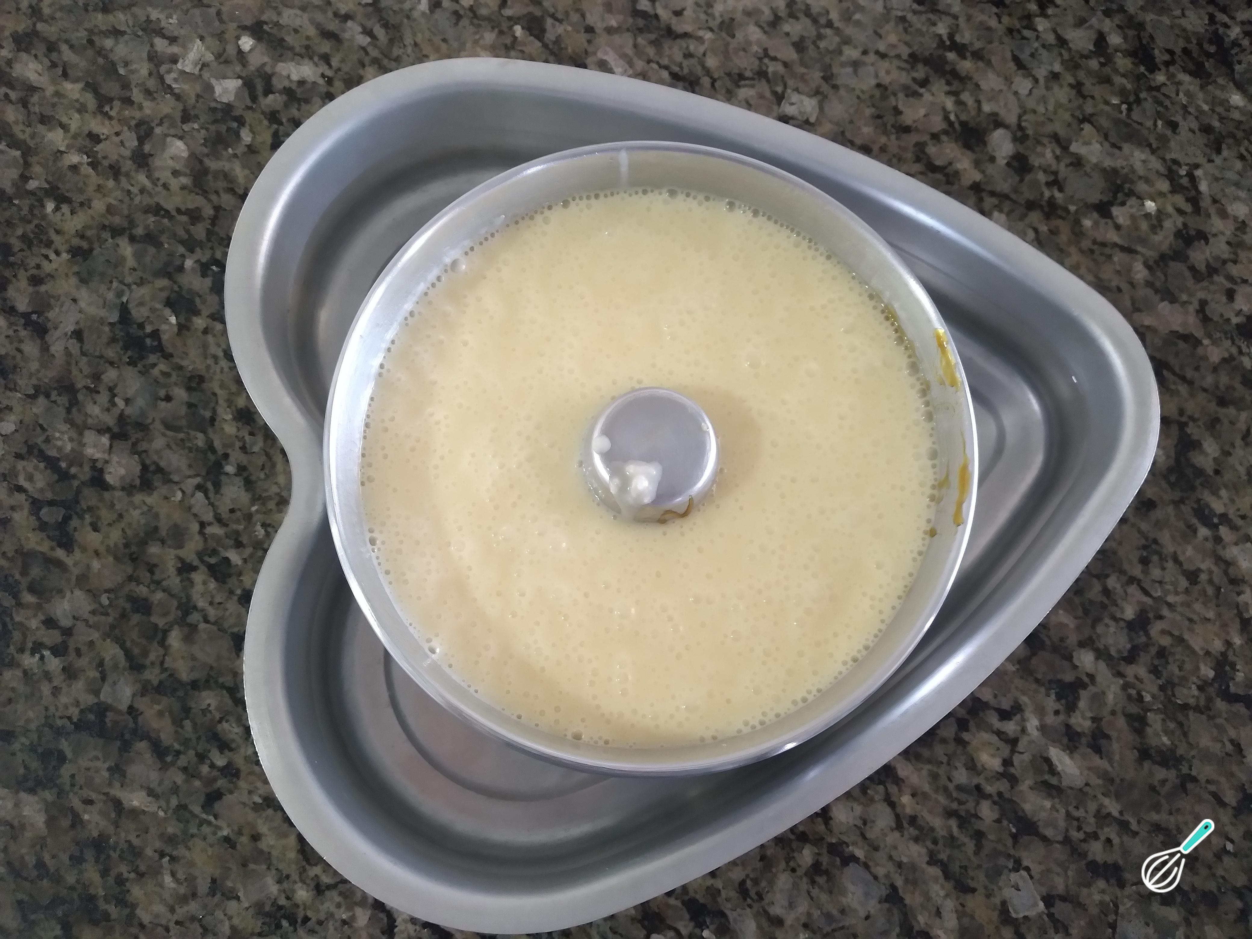 Preaqueça o forno a 180 graus. Em uma forma, em banho maria, coloque a forma do pudim.