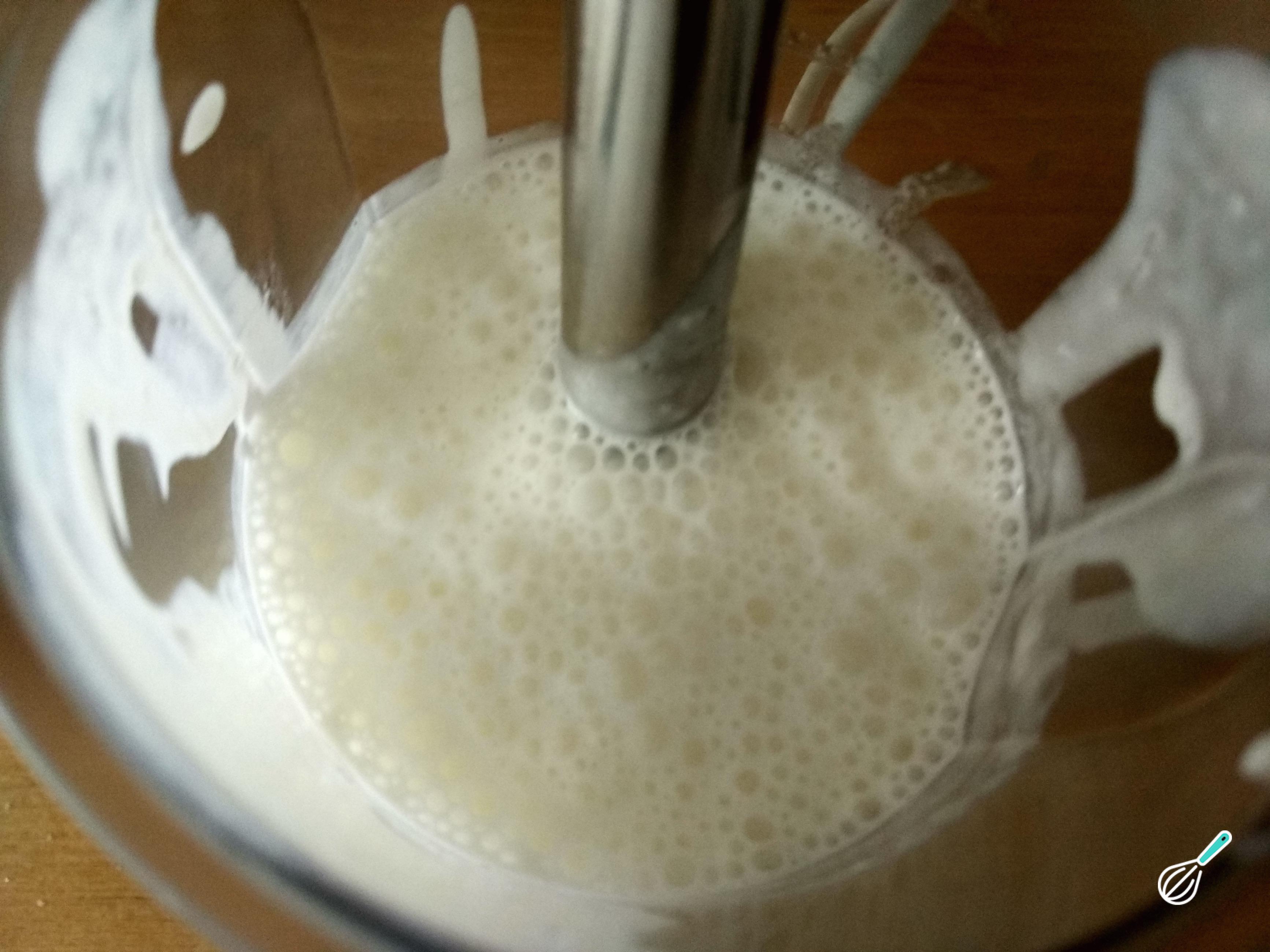 Prepare a camada branca: Misture o creme de leite com metade do leite e comece batendo. Em seguida, adicione o cream cheese e o açúcar e continue batendo. Finalmente, adicione a coalhada em pó e bata até não restarem grumos.