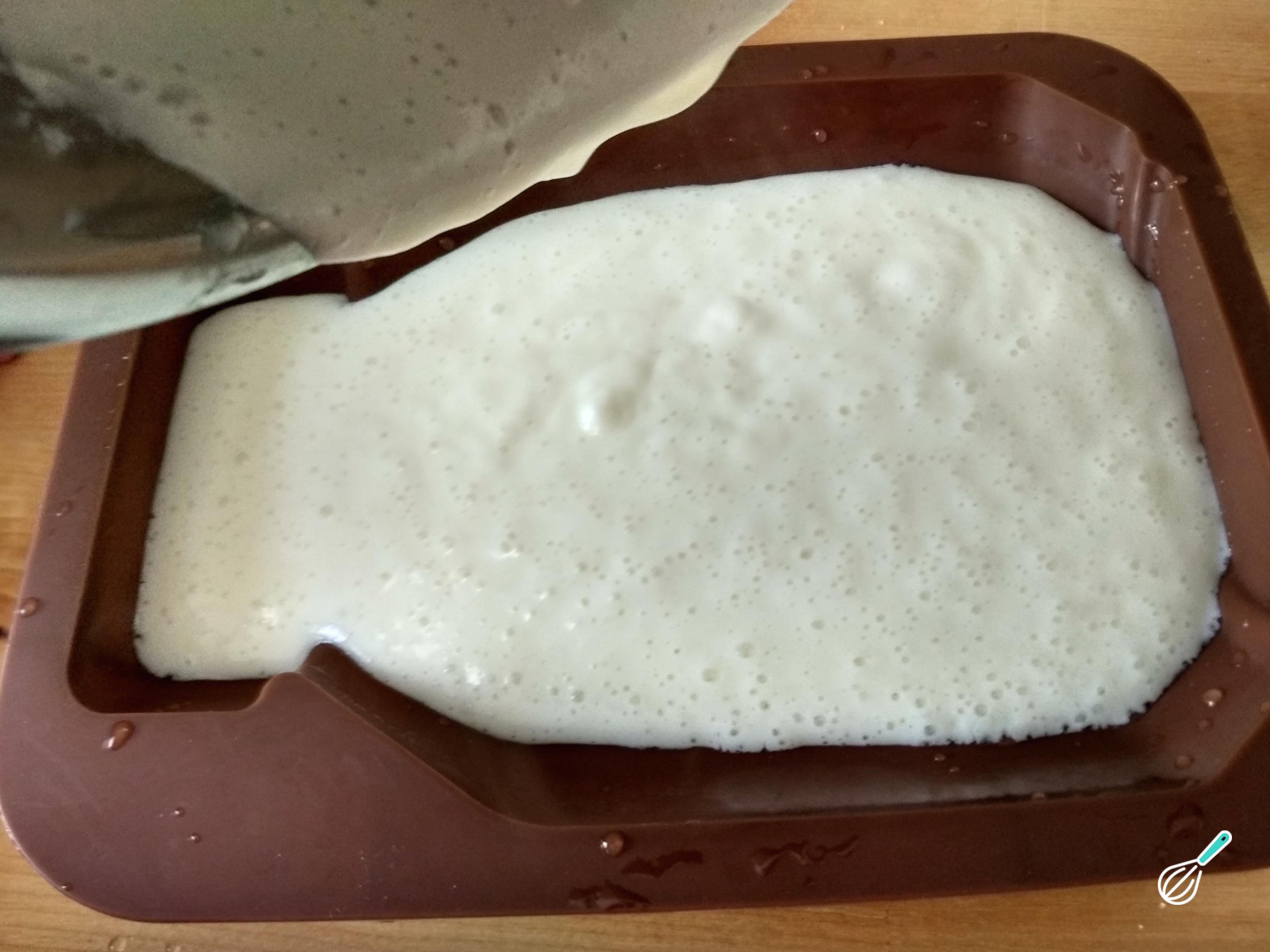 Coloque o recheio do pudim de morango em um molde de silicone previamente umedecido com um pouco de água (para que não grude). Espere que esfrie e coloque na geladeira por 1 hora.