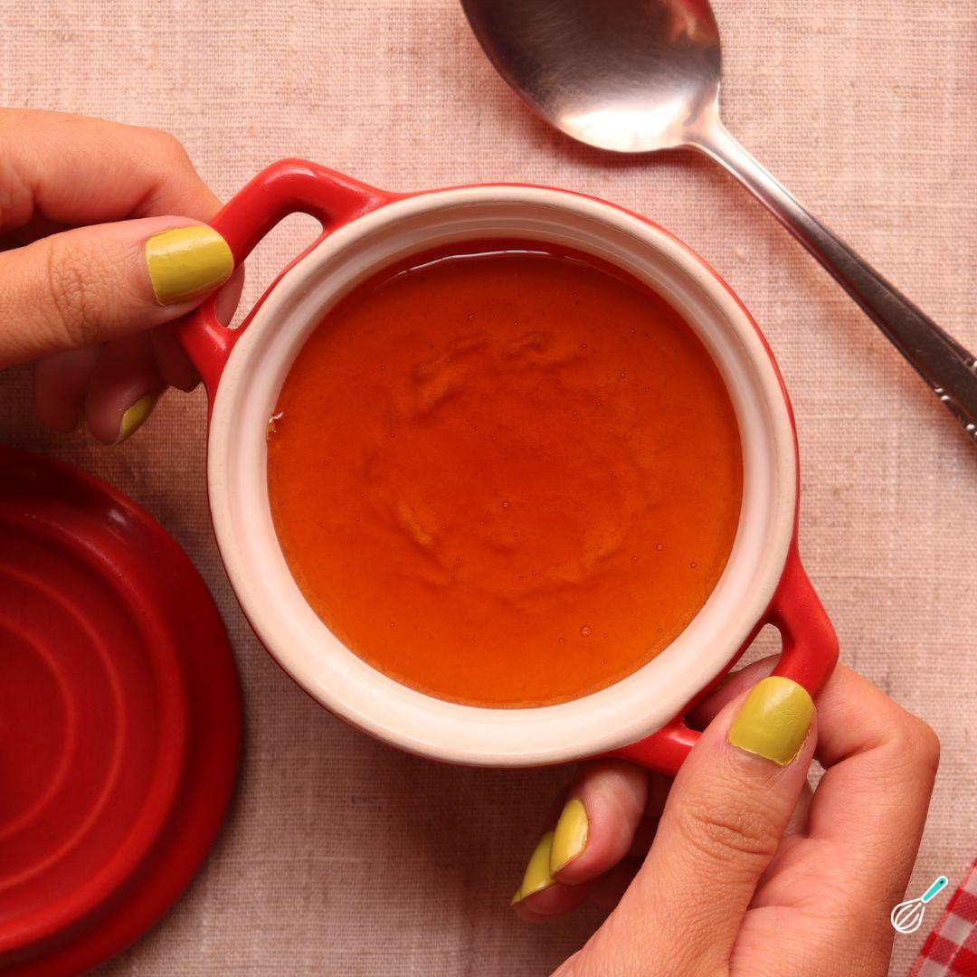 Agora é só esperar esfriar e servir o seu pudim de geladeira com a calda de caramelo.