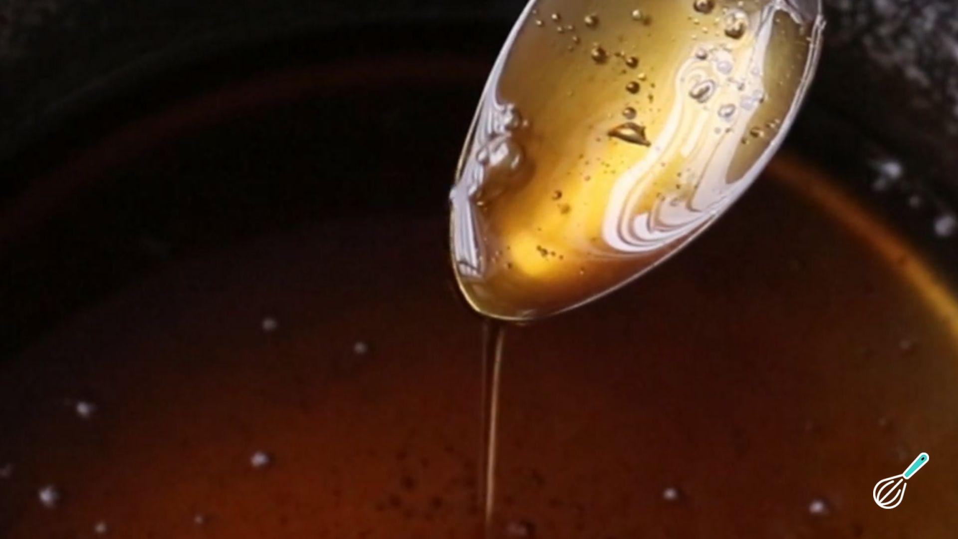 Enquanto isso vamos preparar a calda de caramelo que é bem simples, basta colocar o açúcar e a água em uma panela, misturar e deixar no fogo médio até virar calda dourada.