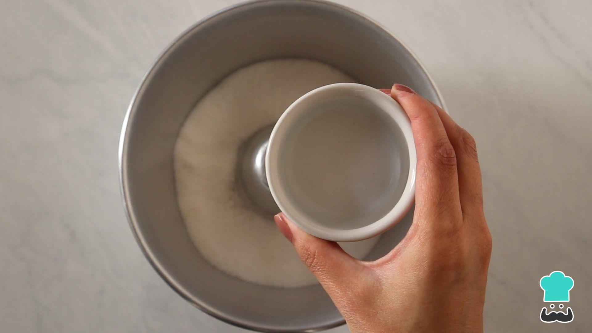 Deixe a massa descansado e, enquanto isso, prepare o caramelo: coloque o açúcar e a água em uma forma com furo no meio.