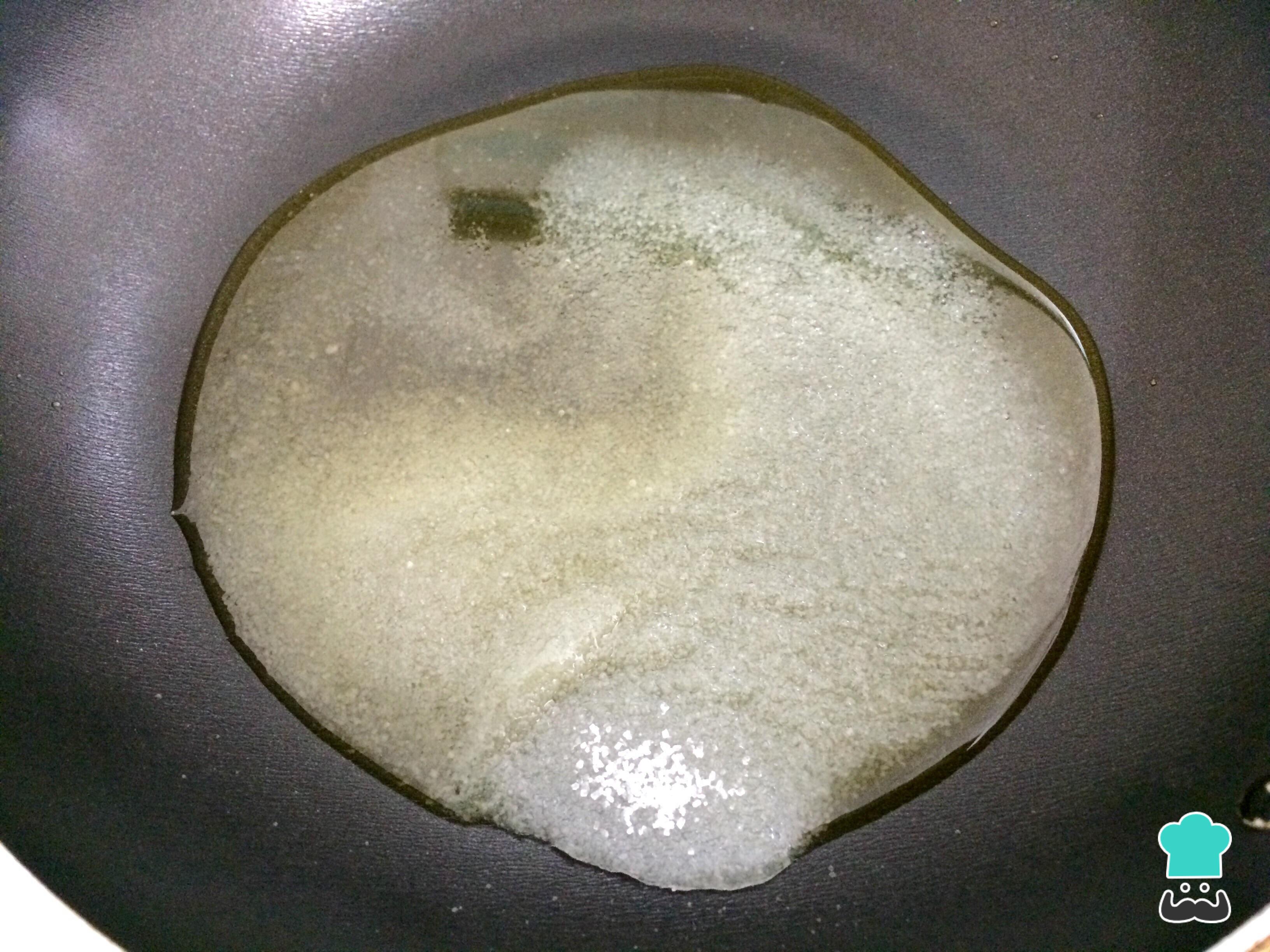 Prepare agora o caramelo do pudim: coloque o açúcar numa frigideira ou uma panela, leve a fogo baixo e deixe derreter sem mexer.
