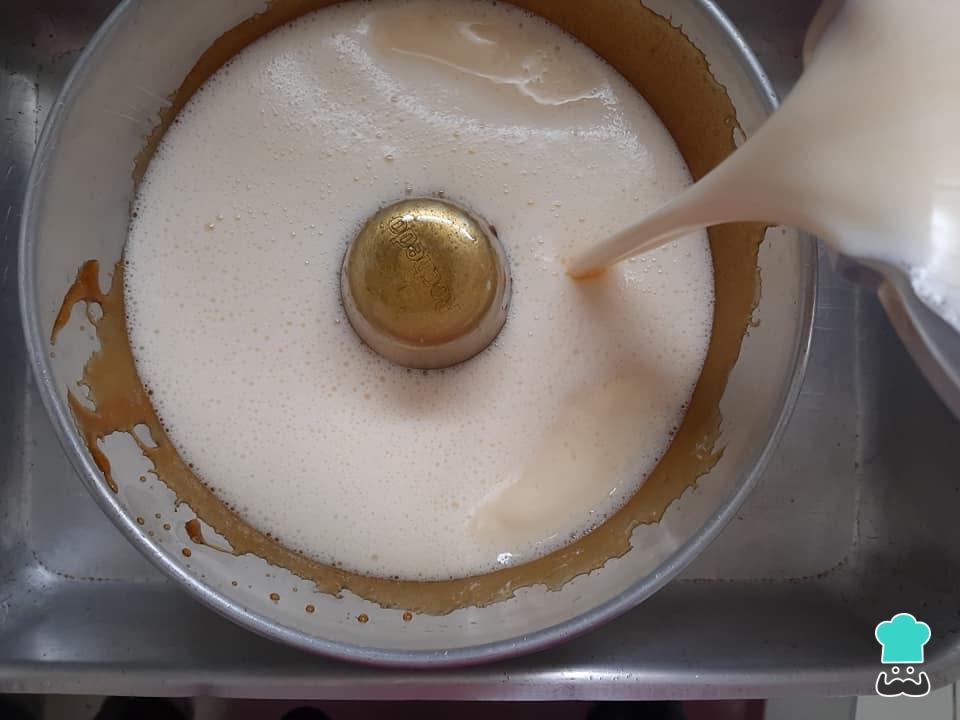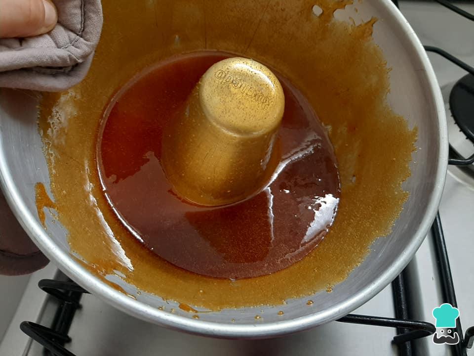 Dica: se não quiser preparar o caramelo na própria forma do pudim, pode fazer esse procedimento em outra panela e em seguida despeje-o na forma.