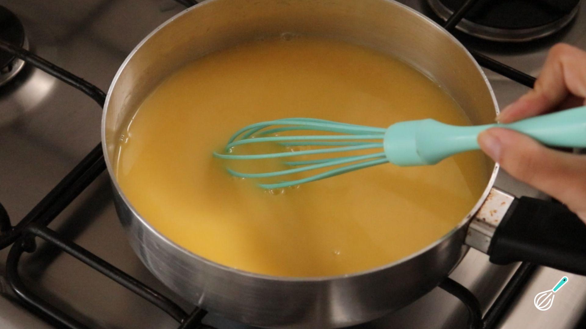 Leve ao fogo médio e cozinhe sem parar de mexer até engrossar.