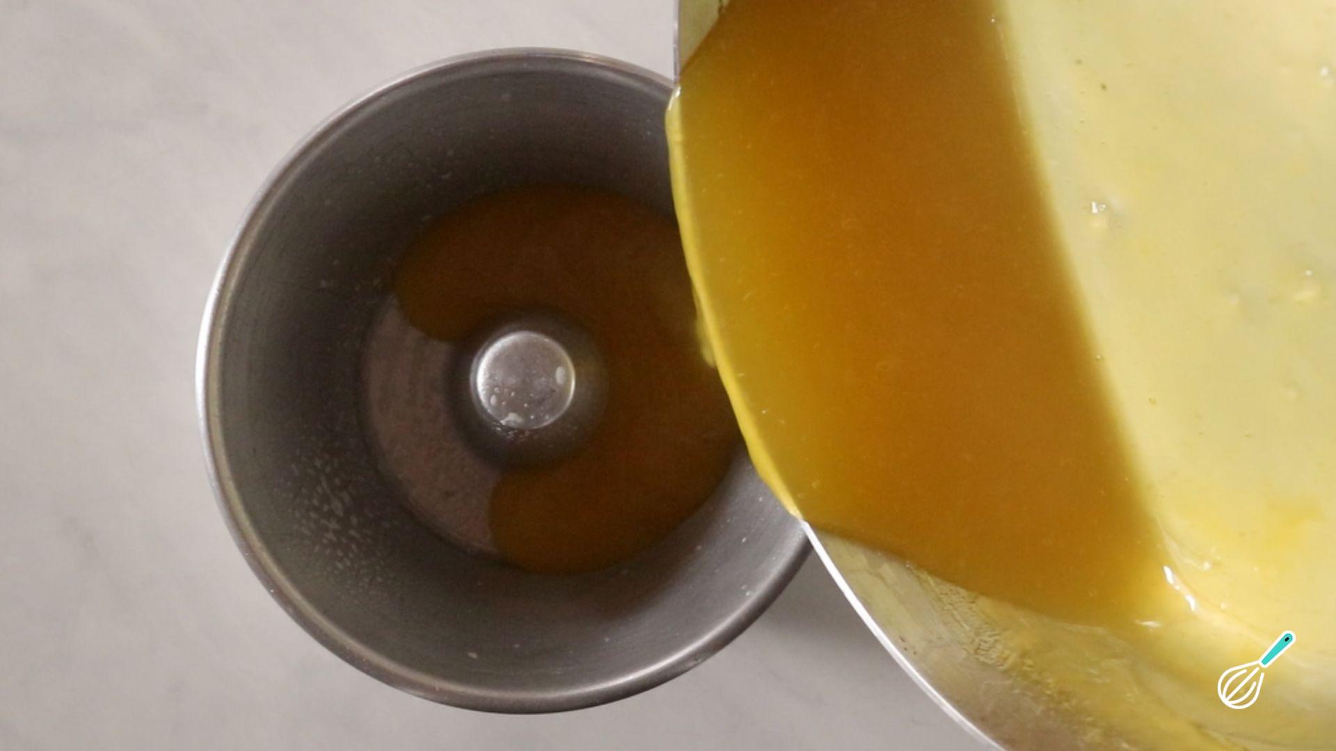 Unte uma forma de pudim com um desmoldante culinário ou um pouquinho de óleo (apenas um pouquinho mesmo!).
