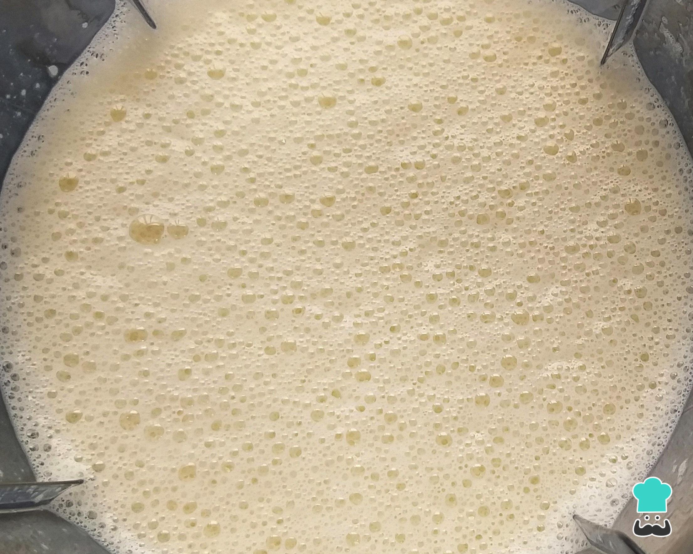 Bata bem todos ingredientes do pudim no liquidificador: ovos, água, leite em pó e açúcar.
