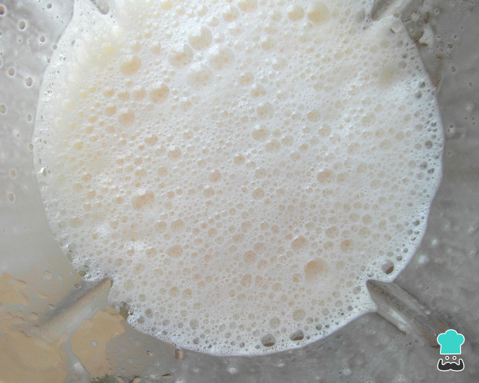 Bata no liquidificador o leite em pó, o açúcar, os ovos e a água até virar uma mistura homogênea, sem grumos.
