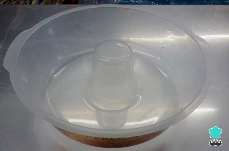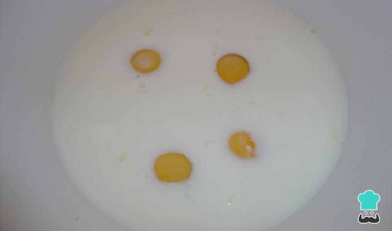 Prepare agora o pudim de microondas: bata todos os ingredientes respetivos no liquidificador ou à mão, com um batedor de claras. Se escolher bater à mão peneire as gemas para retirar a película.