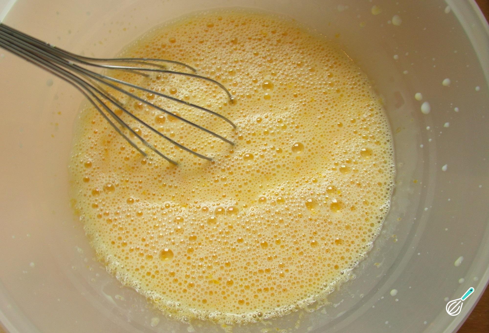 Em seguida adicione o açúcar e a essência e continue batendo, até dissolver os grãos de açúcar.