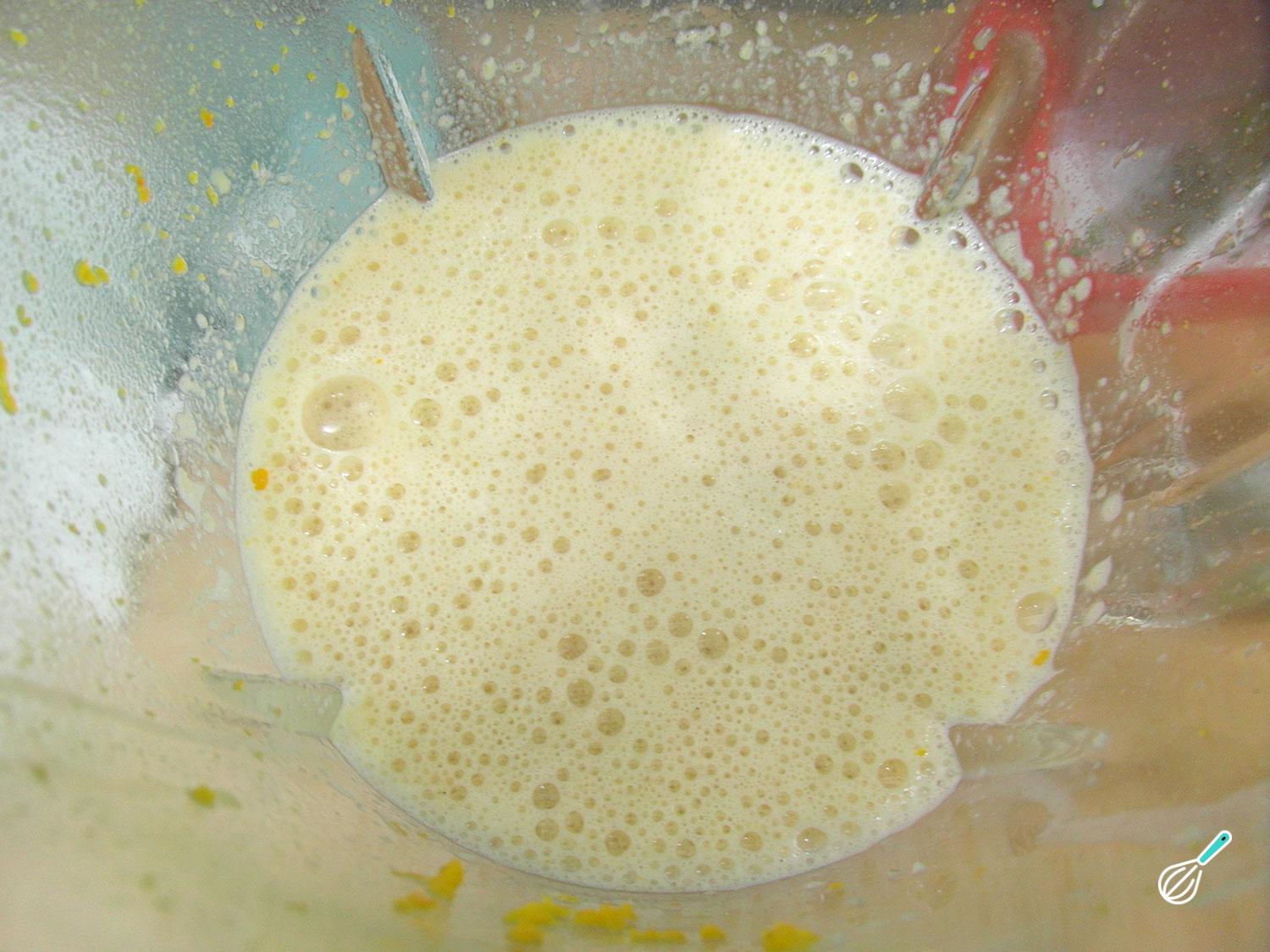 No liquidificador bata o mel com os ovos por 1-2 minutos. Acrescente a raspa de laranja e volte a bater.