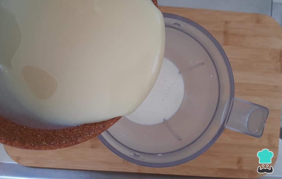 Bata no liquidificador os ovos, o leite líquido, o leite condensado, o requeijão e o queijo parmesão ralado até ficar liso e homogêneo.