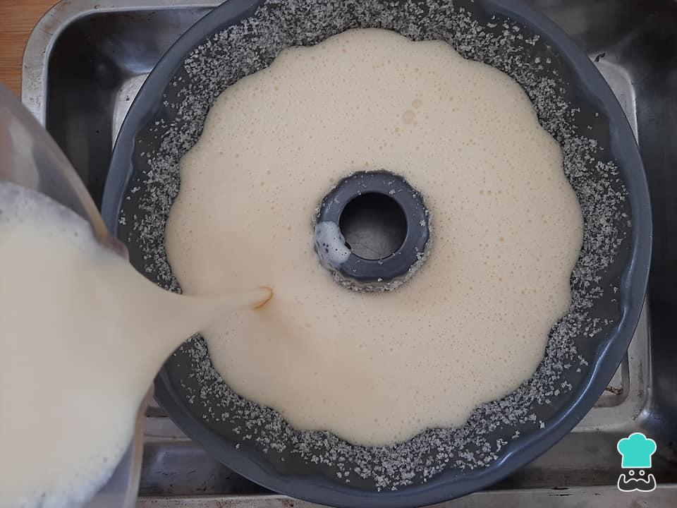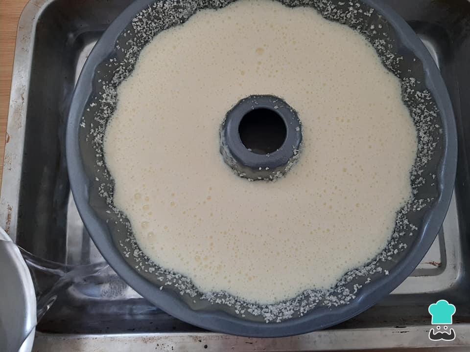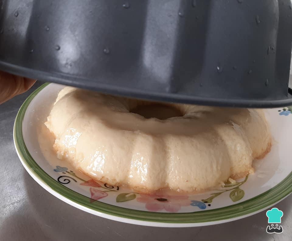 Após assar o pudim, espere esfriar. Antes de desenformar, leve à geladeira por 2 horas, pelo menos.