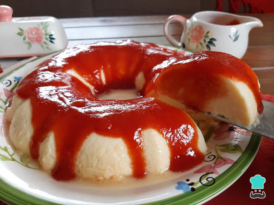 Cubra o pudim com calda de goiabada e sirva em seguida. Tenho a certeza que fará muito sucesso após a refeição em família ou durante um encontro especial!