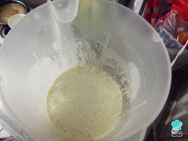 Para fazer este pudim de queijo e leite condensado, coloque todos os ingredientes do pudim num liquidificador e deixe bater até obter uma textura homogênea.