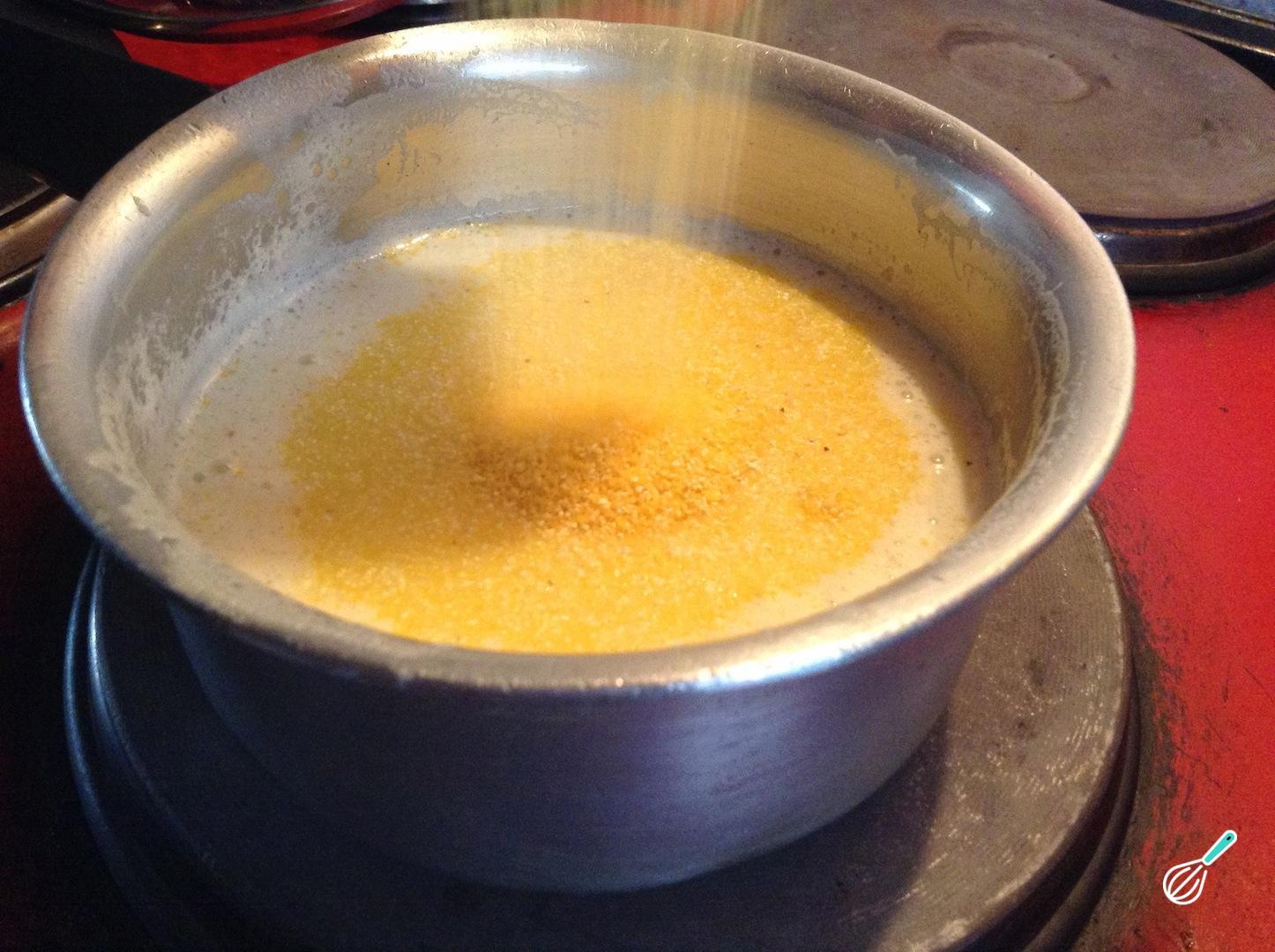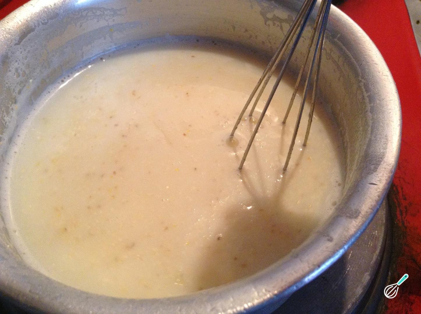 Fique mexendo com a ajuda de um batedor de mão durante mais alguns minutos, para dissolver bem a sêmola.