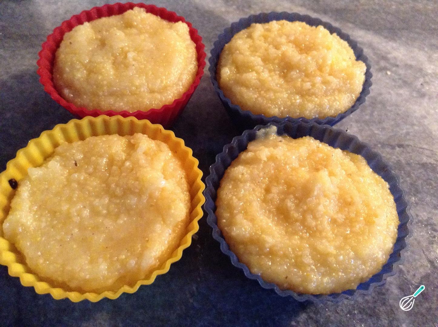 Distribua a massa do pudim de sêmola por forminhas individuais previamente untadas com óleo. Cubra com plástico filme, para evitar que se forme uma nata, e deixe esfriar.
