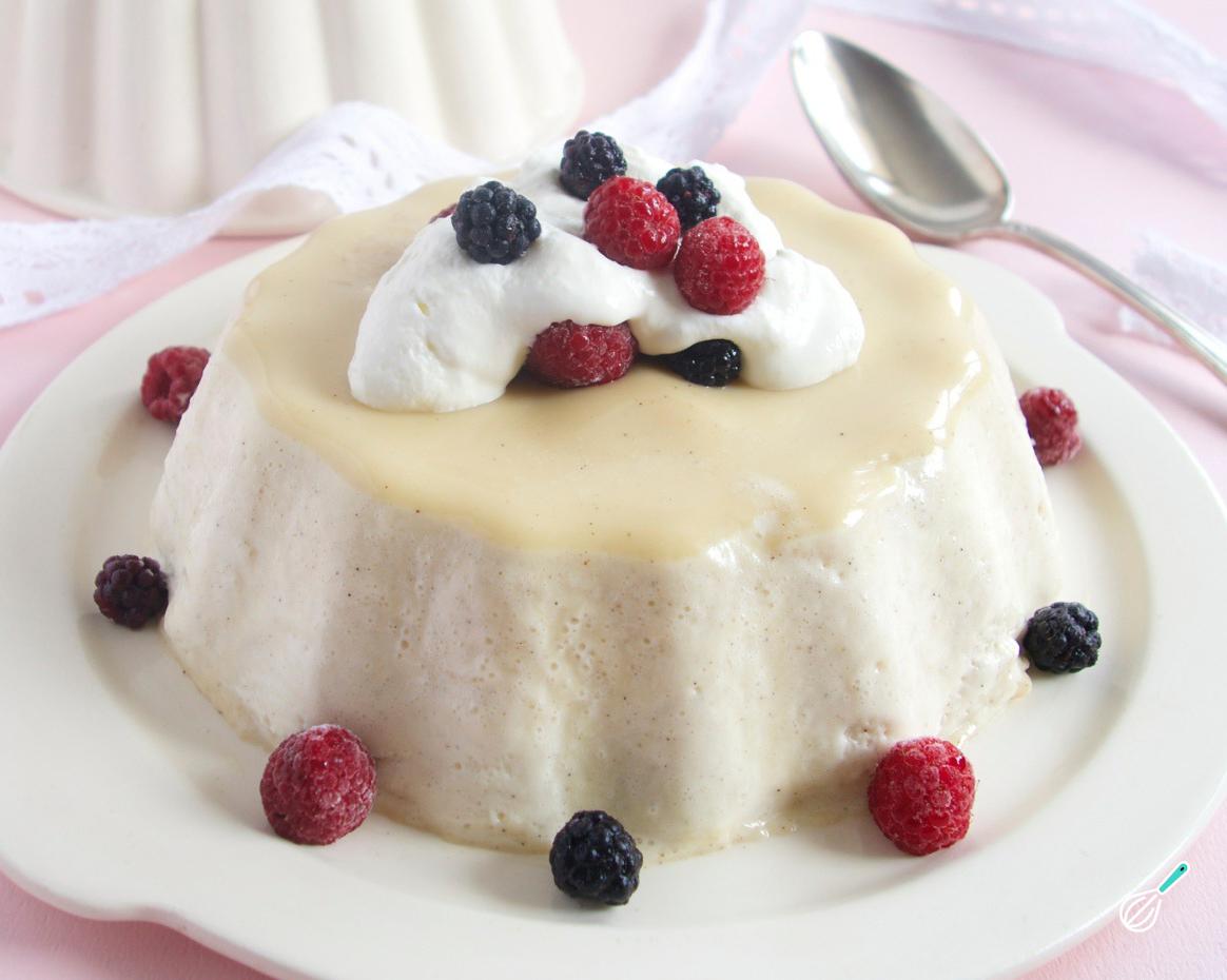 Seu pudim dos anjos, está pronto! Na hora de servir, pode decorar com frutos vermelhos ou com outra fruta que goste. Bom apetite!
