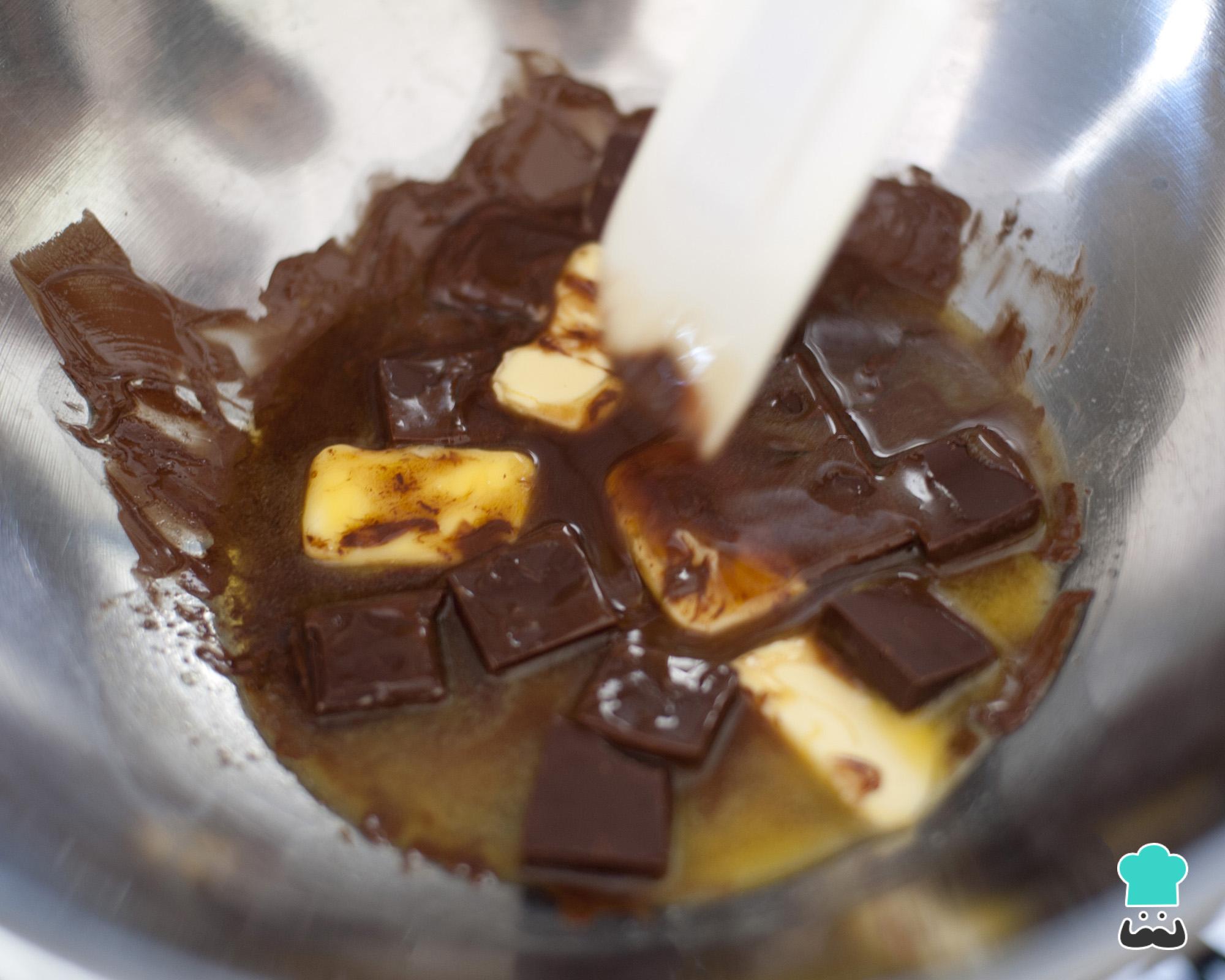 Coloque o chocolate picado e a manteiga ou margarina numa tigela grande e leve ao microondas por 30 segundos, na potência alta. Retire para mexer e devolva ao microondas por mais 30 segundos. Mexa novamente e, se ainda restarem pedaços de chocolate, repita mais uma vez.