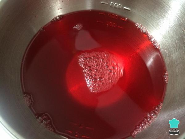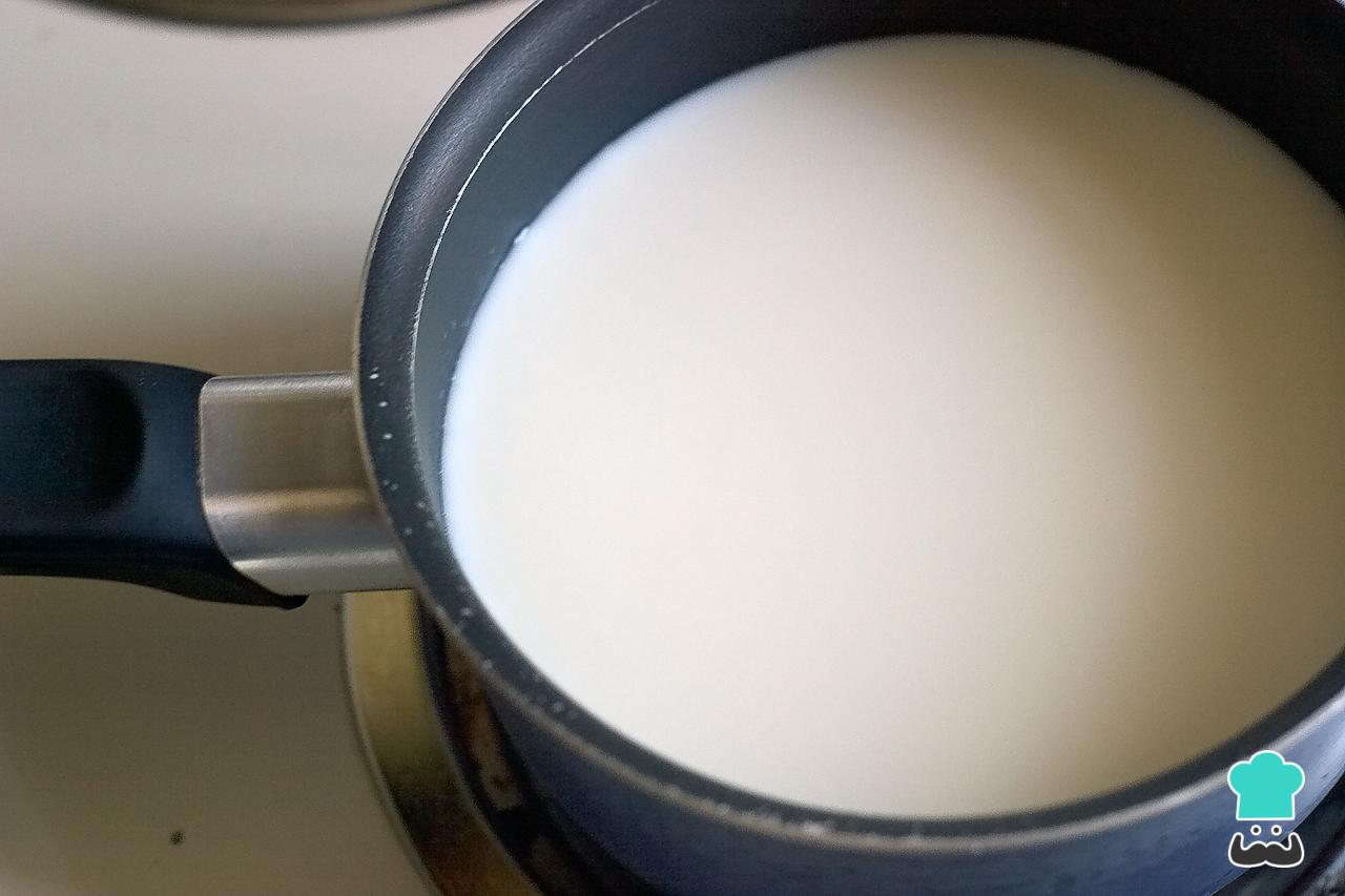 Comece esta receita de pudim de morango gelado por colocar uma lata de leite para esquentar.