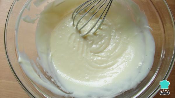 Em uma outra taça coloque o leite condensado, junte o creme de leite e misture bem, com a ajuda de um fouet.