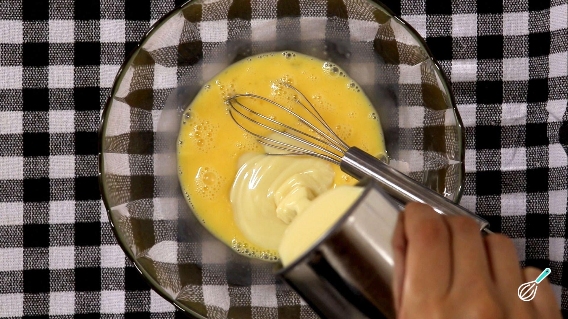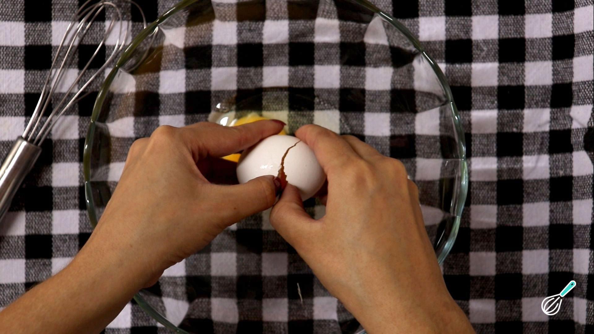 Quebre os dois ovos em uma tigela e bata bem com um fouet (batedor de arame) para misturar as claras com as gemas.