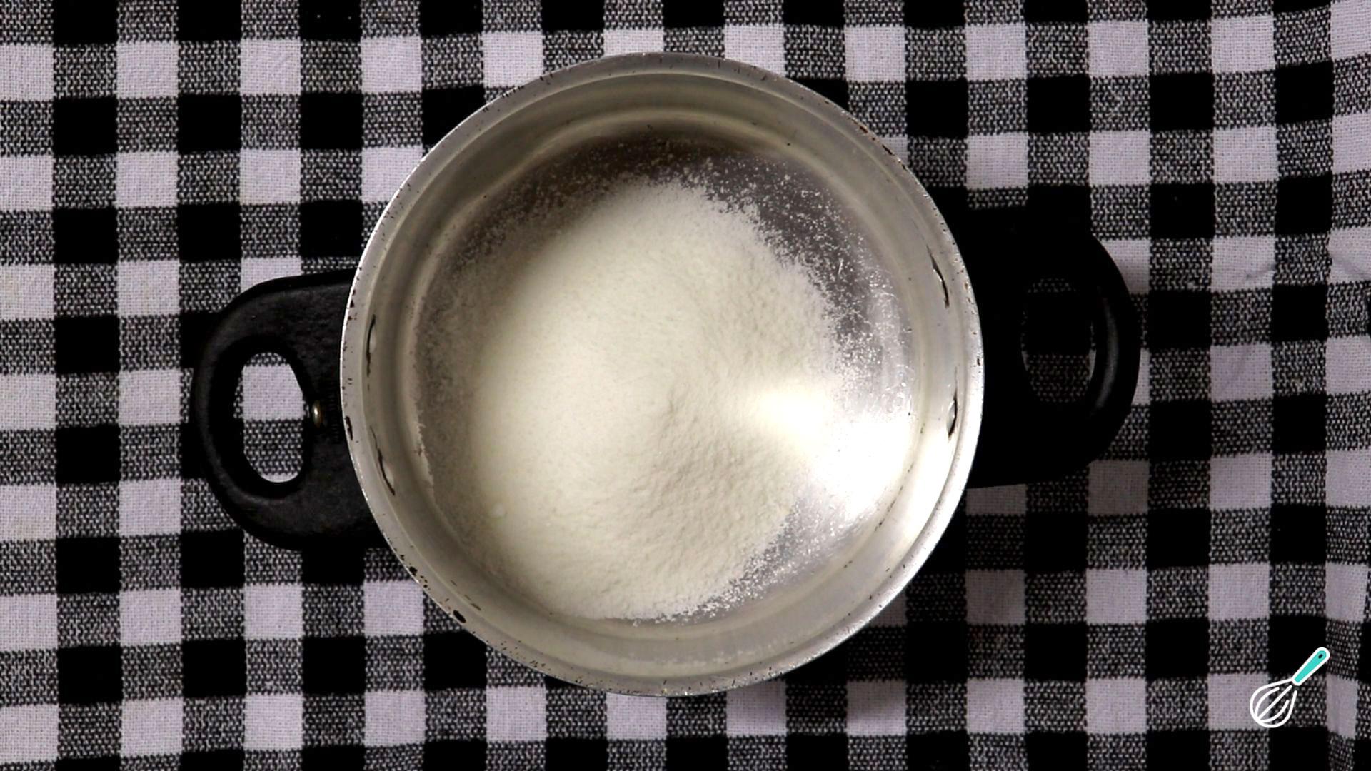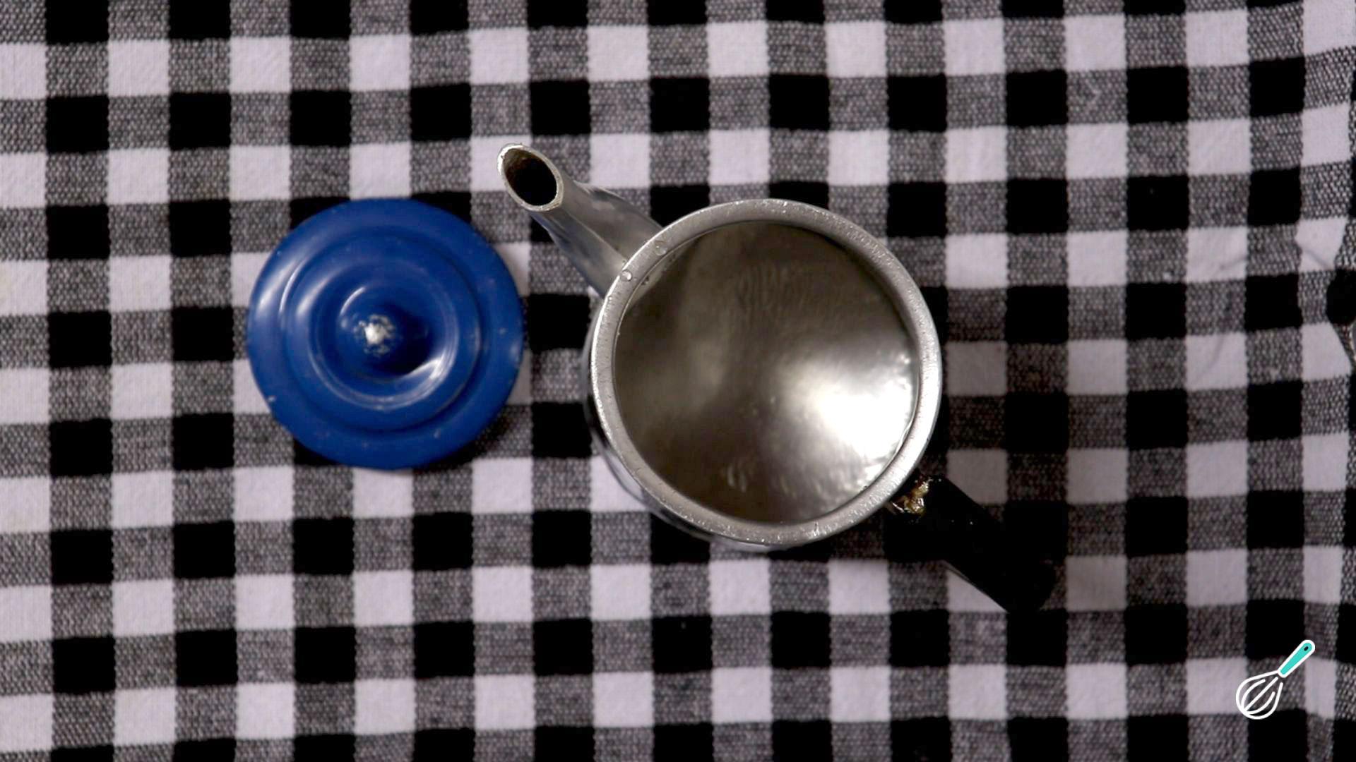 Enquanto isso, ferva 6 xícaras de água. Uma parte dessa água será usada para preparar o caramelo de pudim e o restante para assar o pudim em banho-maria no forno.