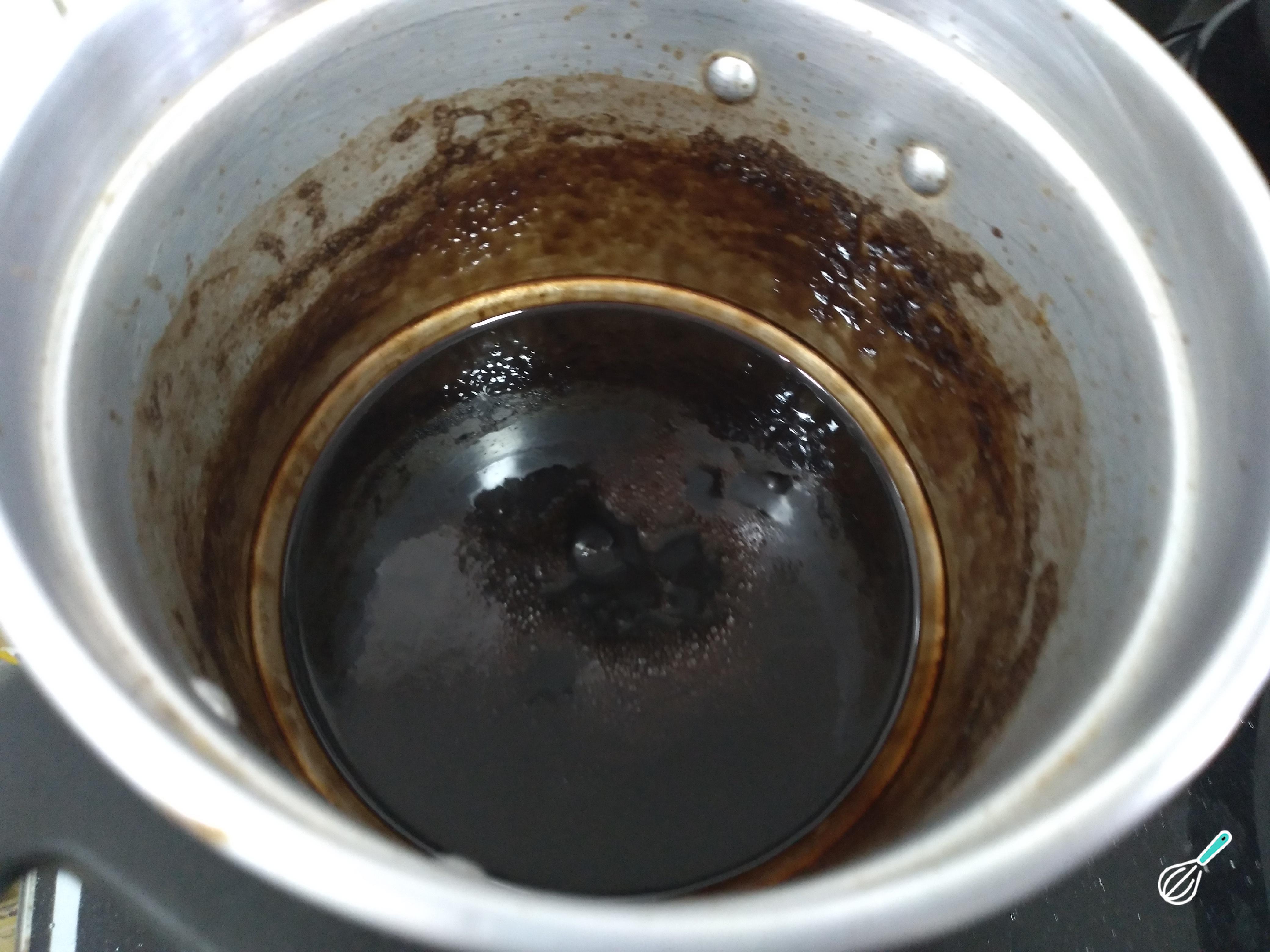 Se transformar em uma calda espessa. Não é necessário ficar mexendo. Mantenha o fogo baixo.