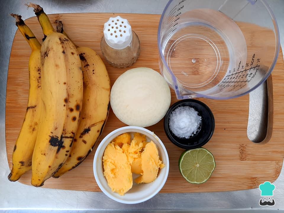 Separe todos os ingredientes necessários para preparar o seu purê de banana da terra.