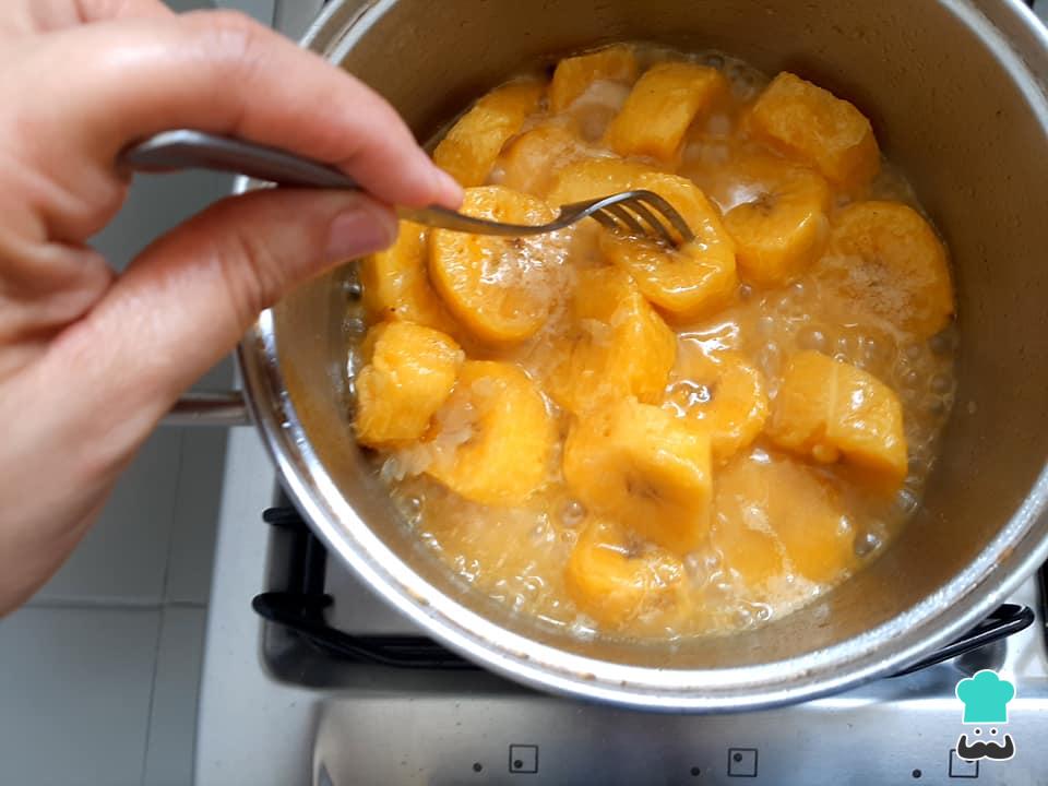 Deixe as bananas cozinharem até amolecerem, sem deixar que água seque.