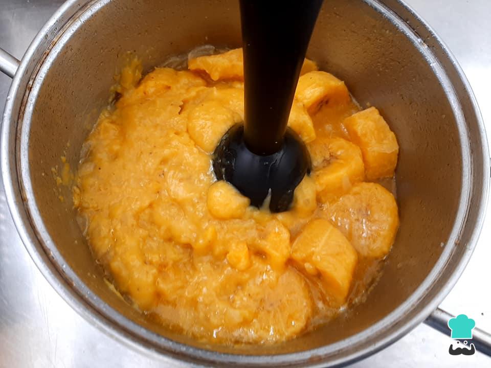 Caso não tenha mixer, não tem problema. Retire as bananas da panela e amasse-as com o auxílio de um garfo. Em seguida, devolva as bananas para a panela e misture ao restante dos ingredientes. Dessa forma, você terá um purê mais rústico!